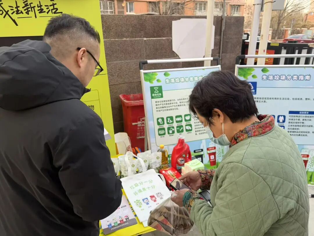 活动当天,工作人员向居民讲解不同种类垃圾的正确投放方式,认真解答居民提出的垃圾分类相关问题,现场进行了物品兑换,激发了居民参与垃圾分类的热情。