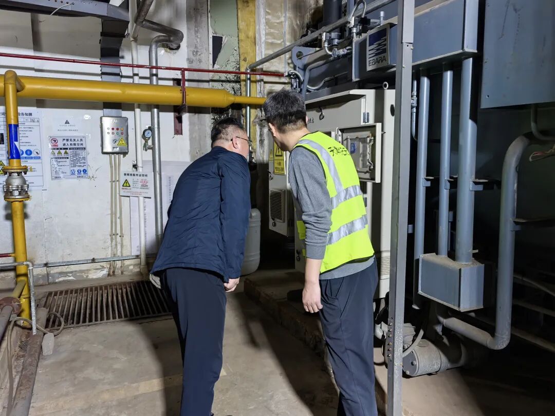 调研组先后来到保利玫瑰湾供热站、赵沽里新苑供热站、文江里供热站,详细了解各供热站在热源供给、供热保障等方面存在的问题以及在绿色转型、设施升级等方面的思路举措。随后,一行人来到金钟街城市更新项目污水源热泵站房,听取供热企业关于污水源热泵供热能效及运维模式的介绍,近距离感受新能源供热的突出优势。