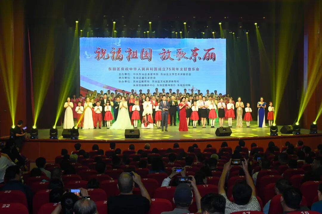 本场音乐会由中共东丽区委宣传部、区文学艺术界联合会共同主办,讴歌了中华人民共和国成立75周年来的光辉历程和伟大成就,大力弘扬以爱国主义为核心的民族精神和以改革创新为核心的时代精神,抒发了全区上下更加紧密地团结在以习近平同志为核心的党中央周围,高举习近平新时代中国特色社会主义思想伟大旗帜,深入学习贯彻党的二十届三中全会精神和习近平总书记视察天津重要讲话精神,牢记嘱托、实干奋进、善作善成、锐意进取的时代心声,展现了全区人民坚定信念、携手同心、奋发有为、昂扬向上的精神风貌和时代风采,创新推进中国式现代化东丽实践行稳致远的坚定信心。接近尾声时,在持续热烈的掌声中,全体演员合唱《歌唱祖国》,以真挚深情唱响中华民族伟大复兴,共同祝福伟大祖国国泰民安、繁荣富强,人民幸福安康,祝愿东丽明天更加美好。