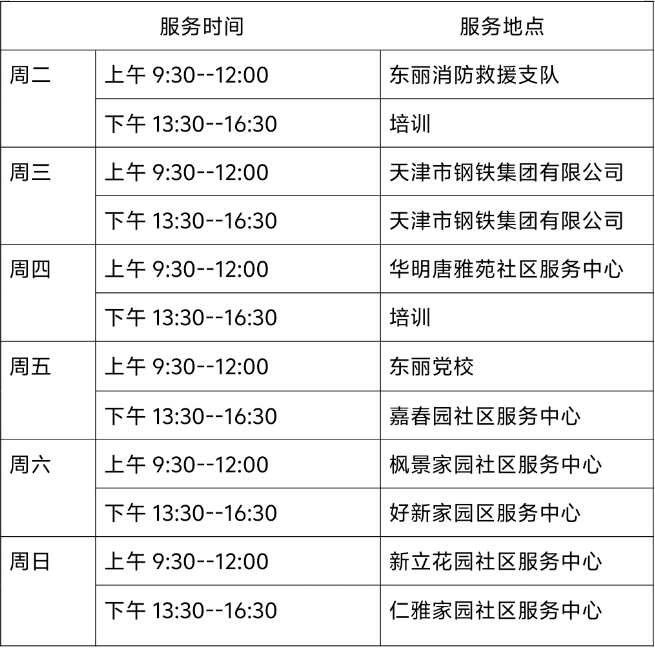 东丽区图书馆流动服务车服务时间地点(9月9日—9月14日)