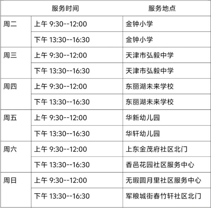 东丽区图书馆流动服务车服务时间地点(9月16日—9月21日)