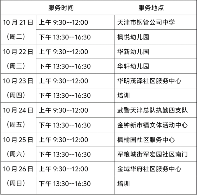 东丽区图书馆流动服务车服务时间地点(10月21日—10月26日)