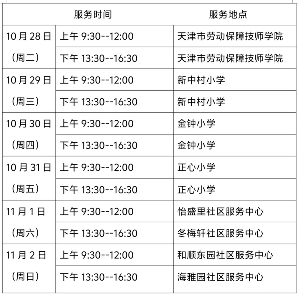 东丽区图书馆流动服务车服务时间地点(10月28日—11月2日)
