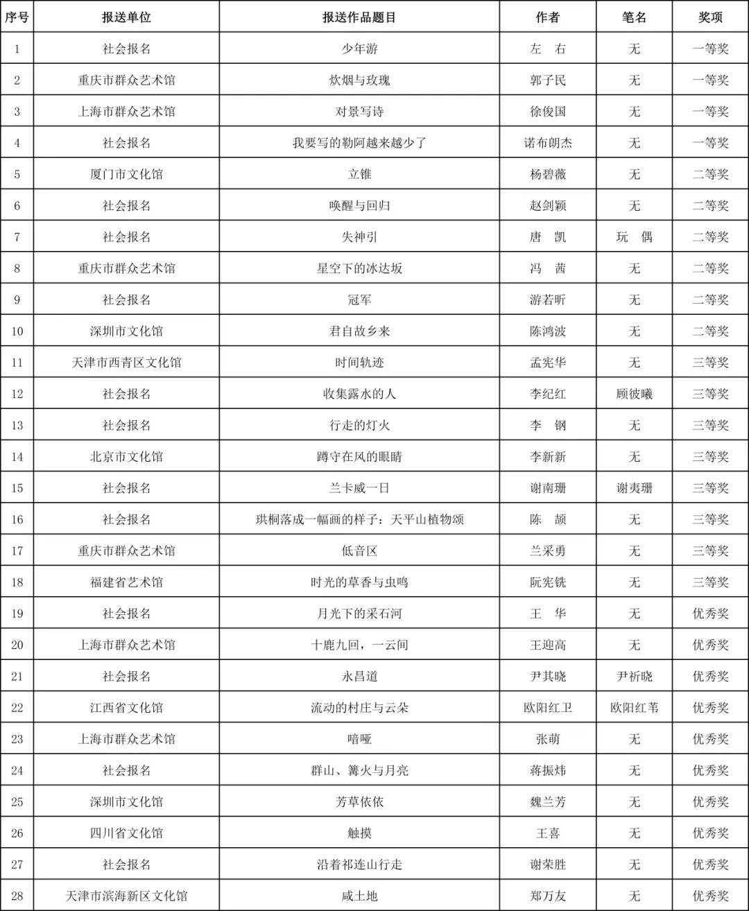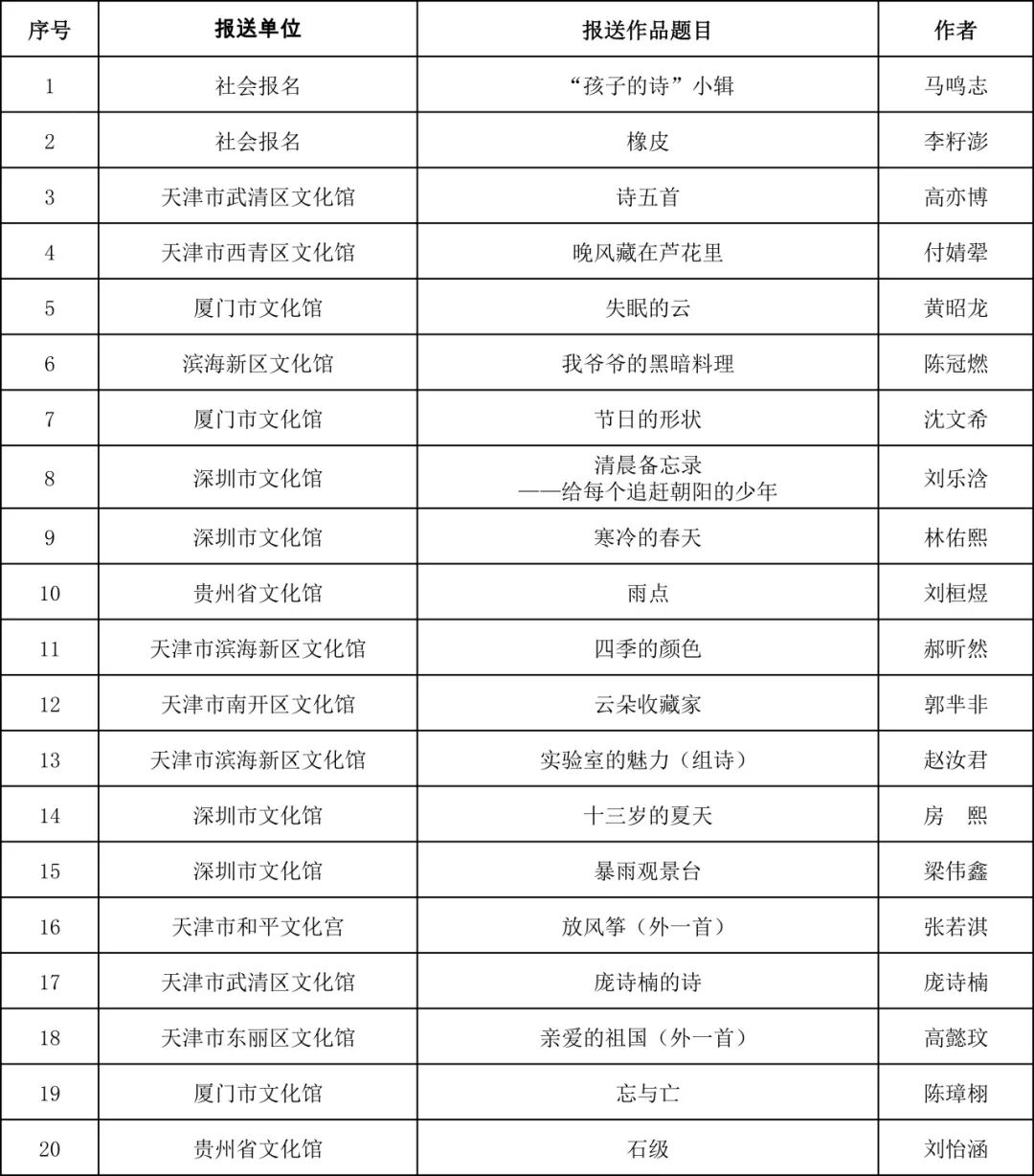第三十四届“东丽杯”鲁藜诗歌评选活动获奖名单