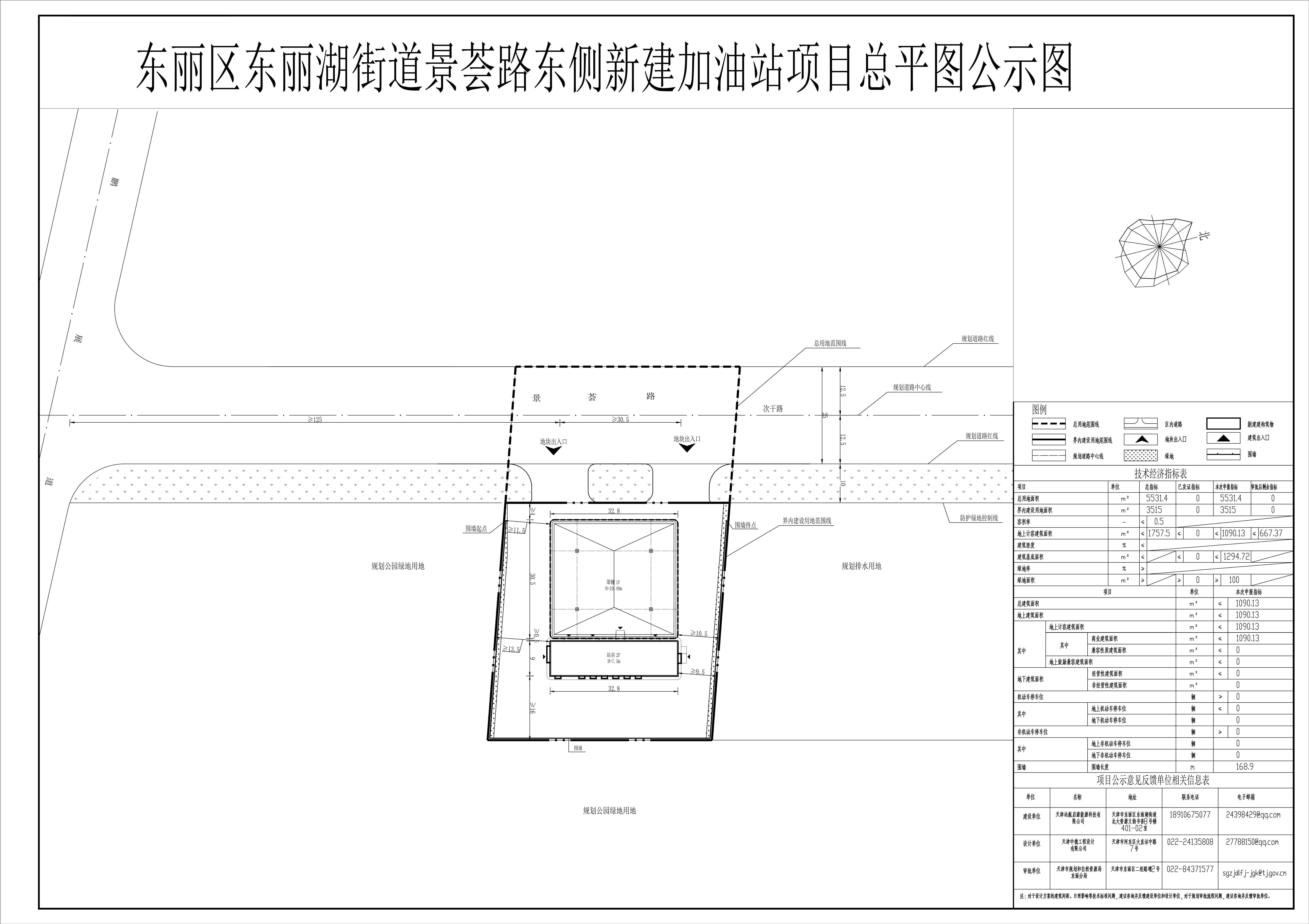 天津市规划和自然资源局东丽分局,依据《中华人民共和国城乡规划法》的有关要求,现将东丽区东丽湖街道景荟路东侧新建加油站项目建筑工程设计方案总平面图进行公示,公示期为7个工作日。如有意见,请于公示期内进行反馈,逾期视为无意见。联系方式如下: