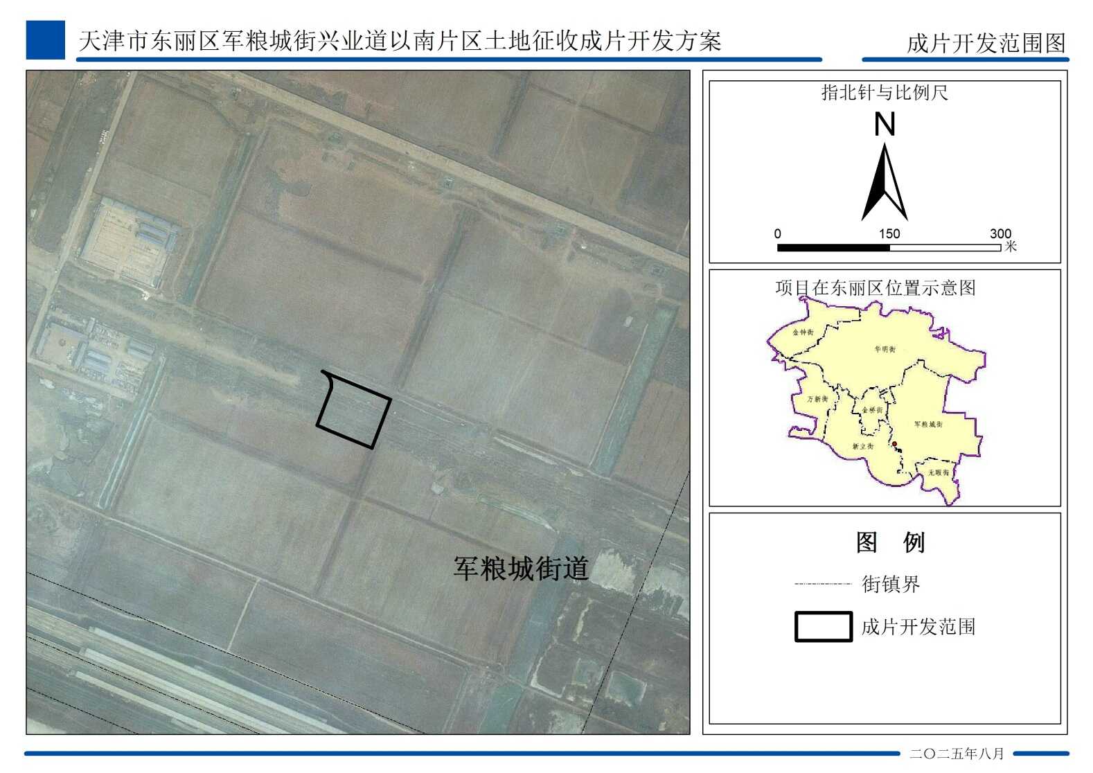 附图:《天津市东丽区军粮城街兴业道以南片区土地征收成片开发方案成片开发范围图》