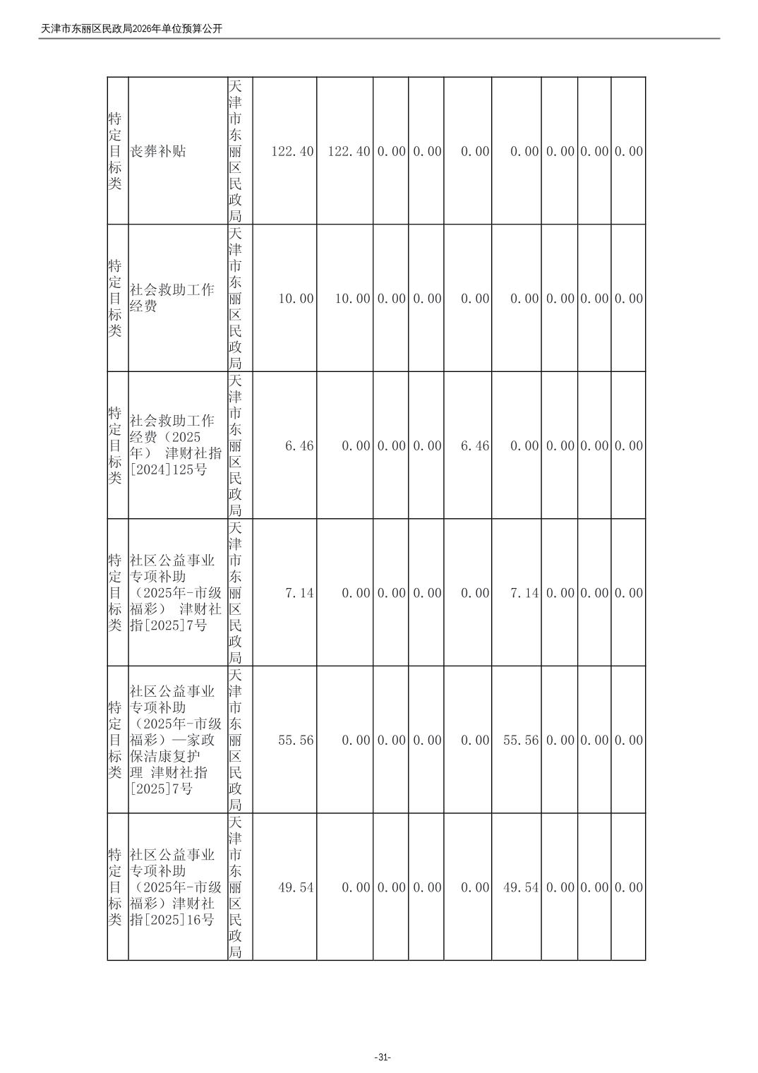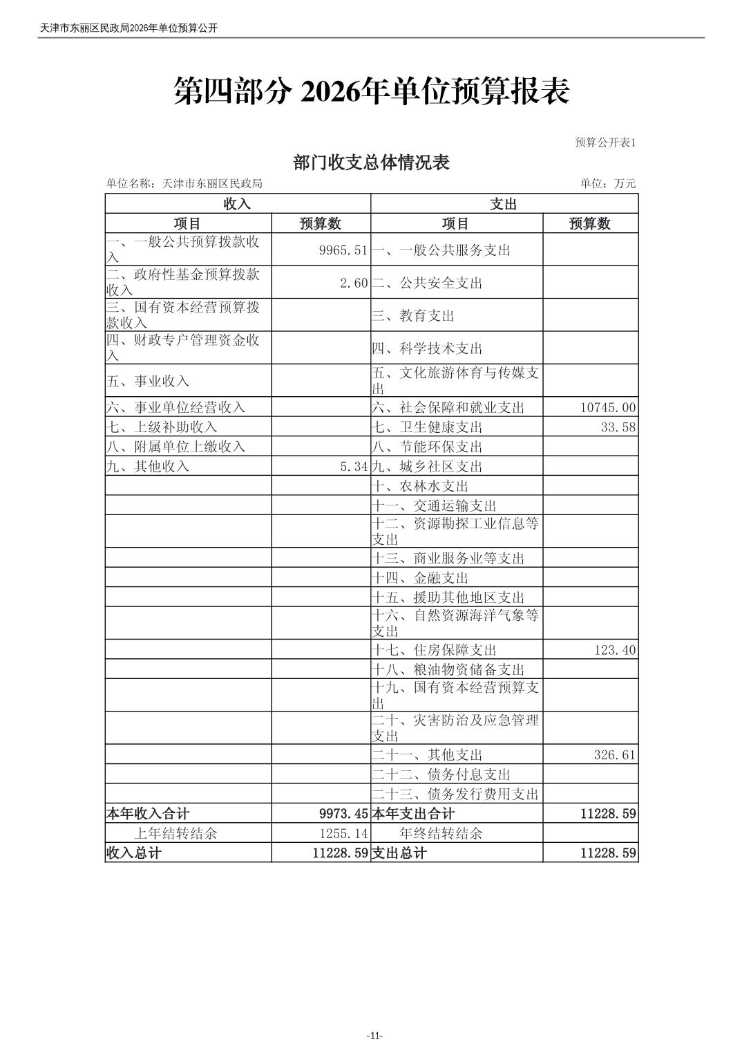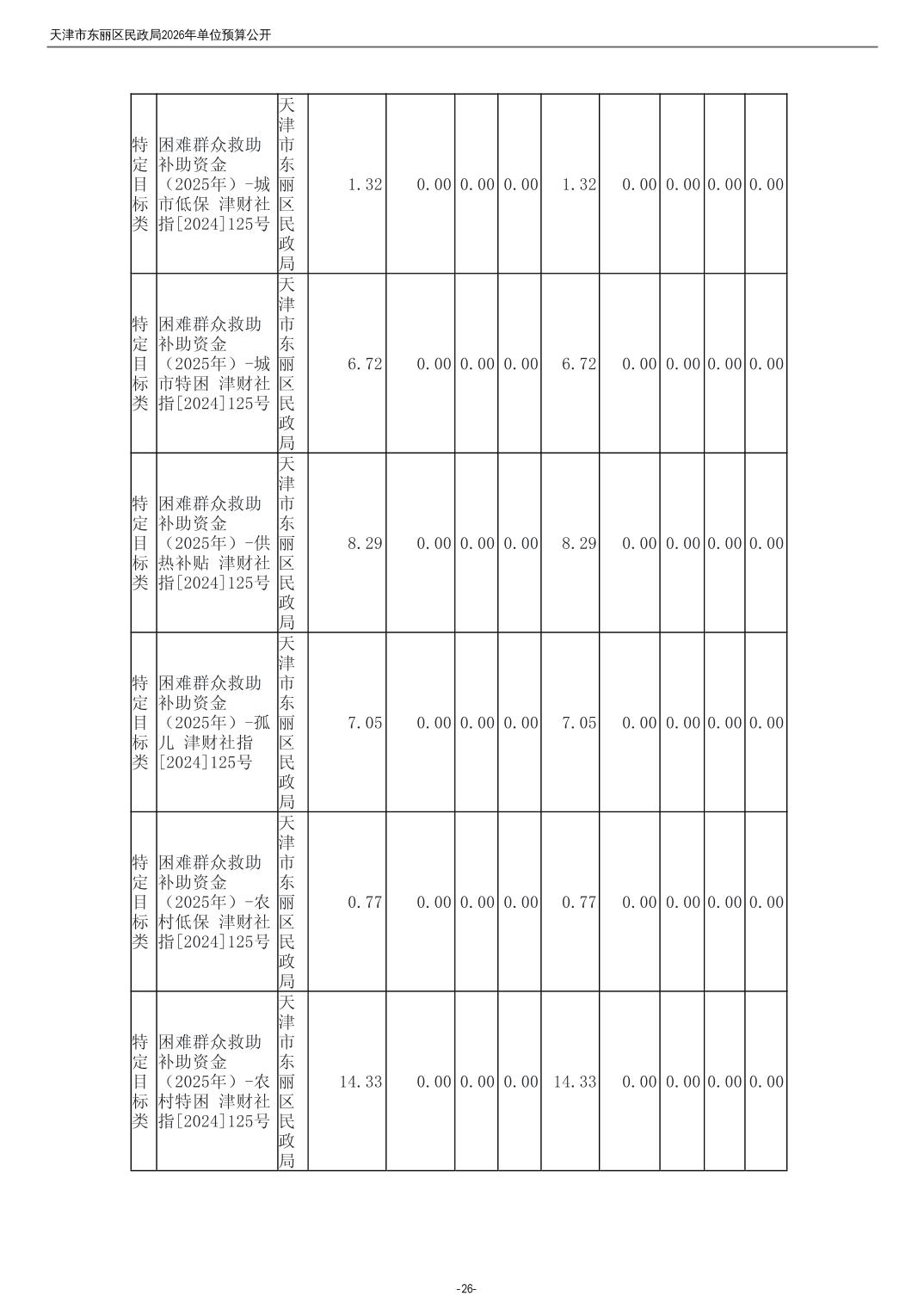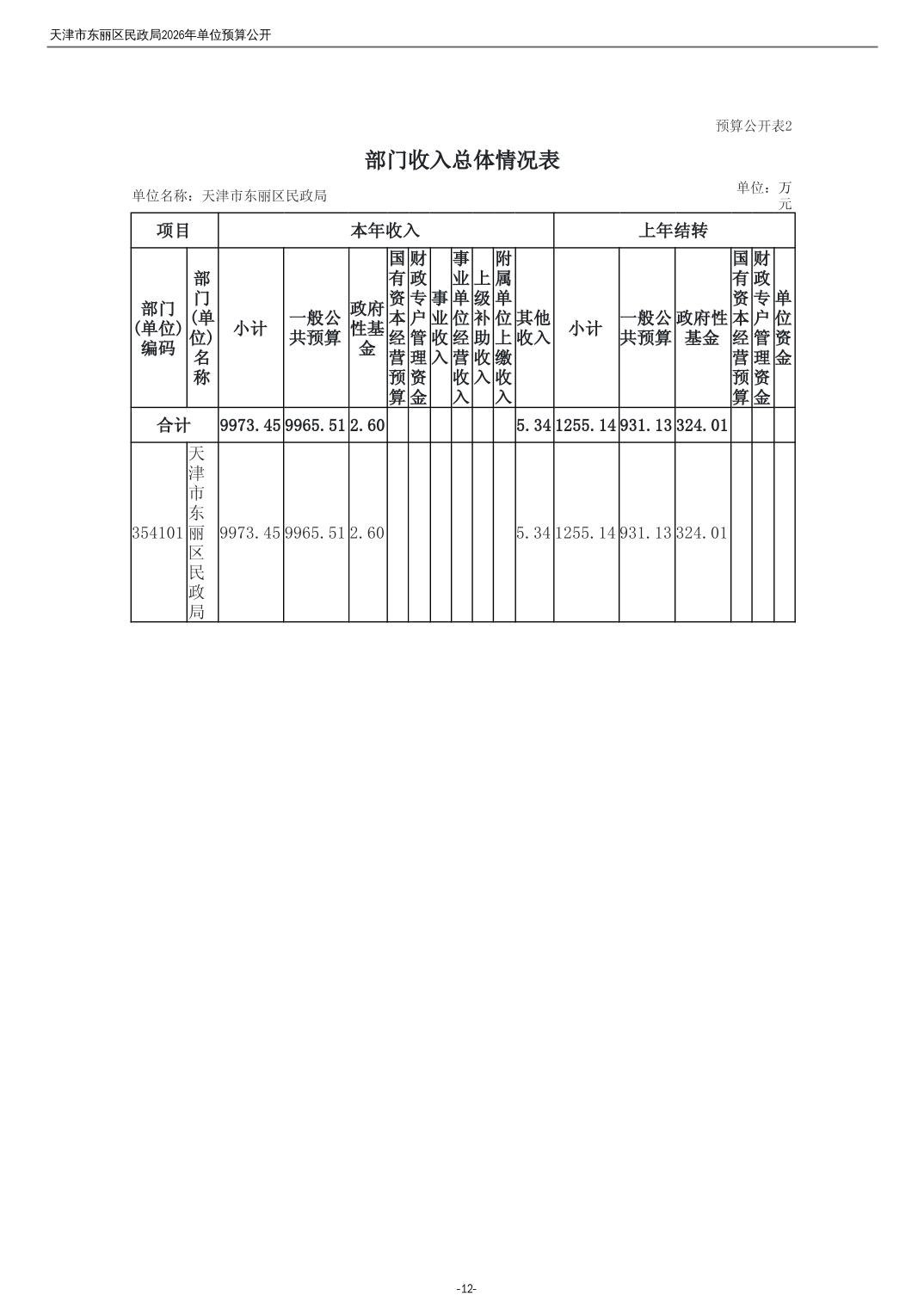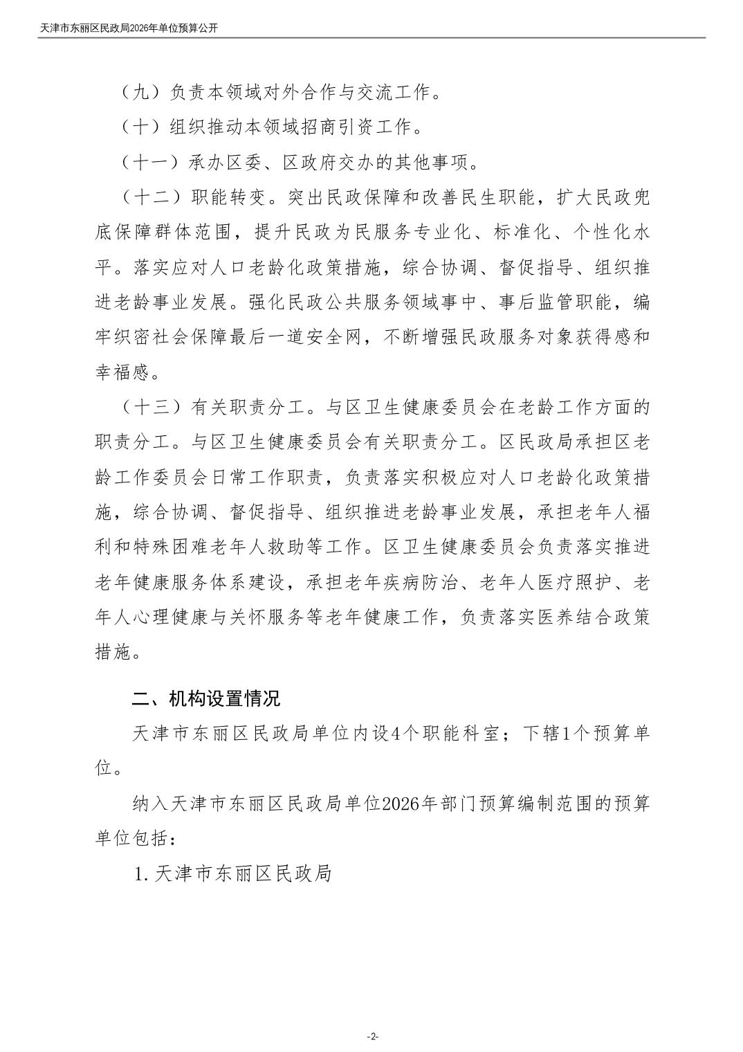 2026年度天津市东丽区民政局单位预算公开