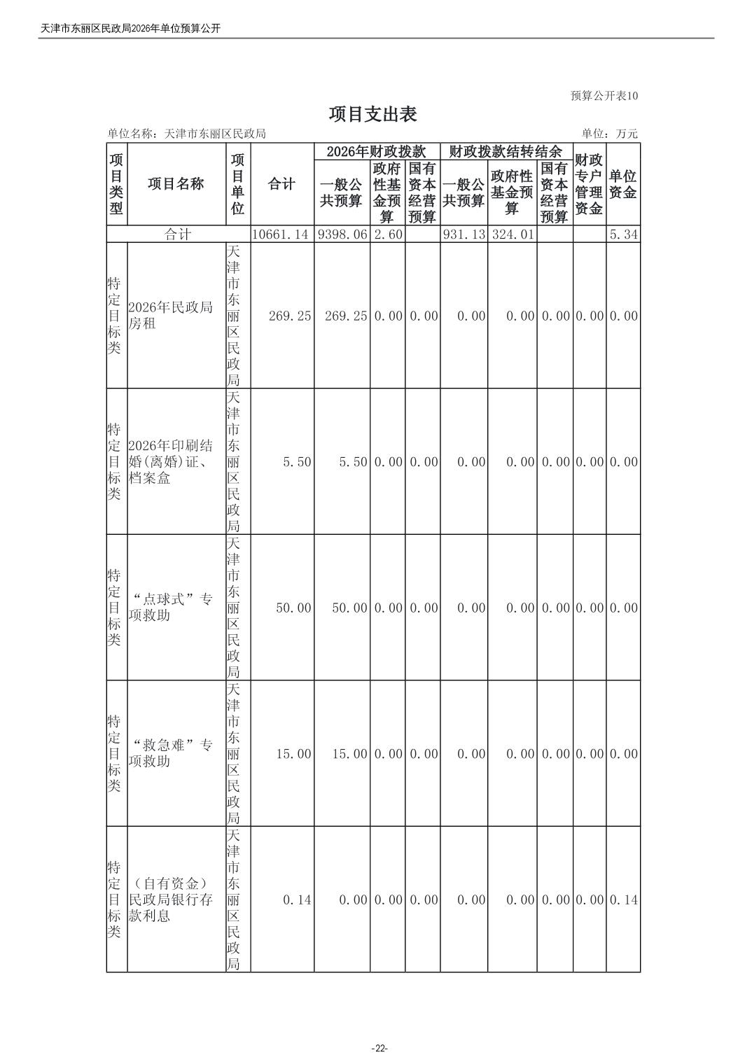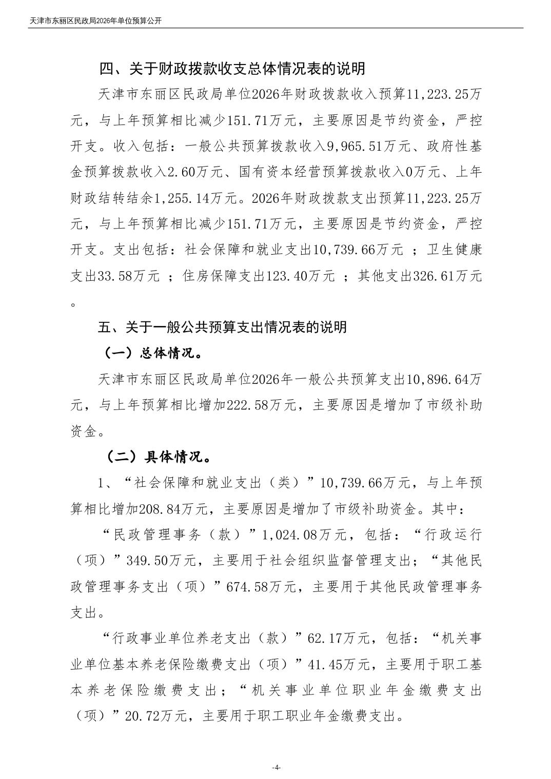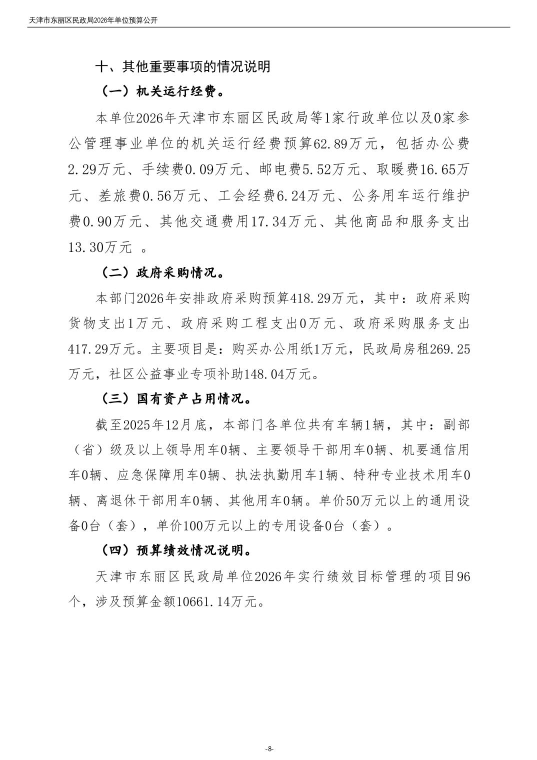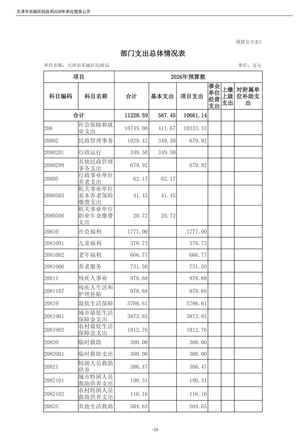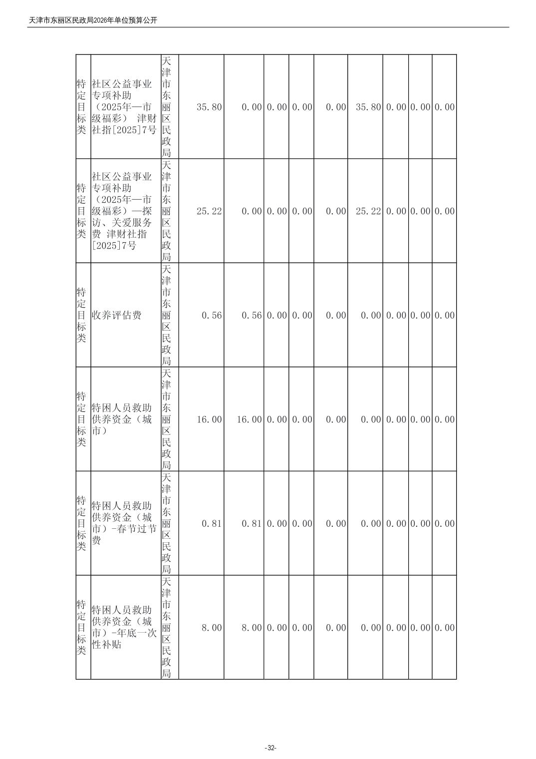 2026年度天津市东丽区民政局单位预算公开