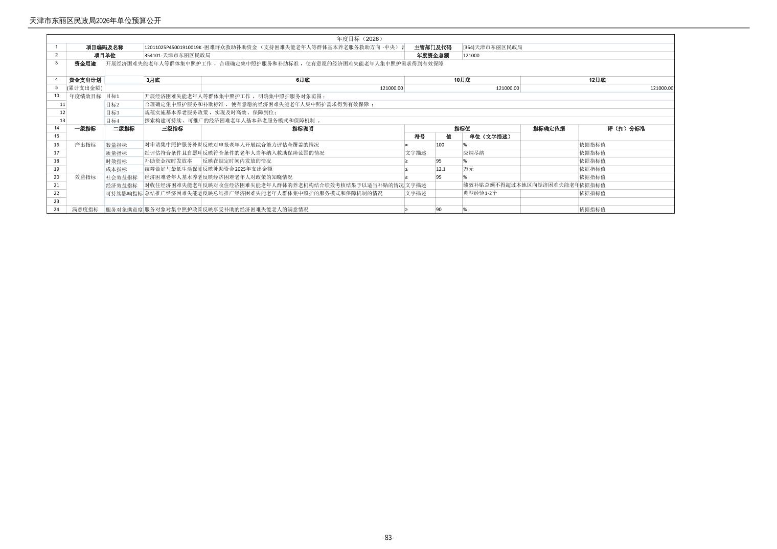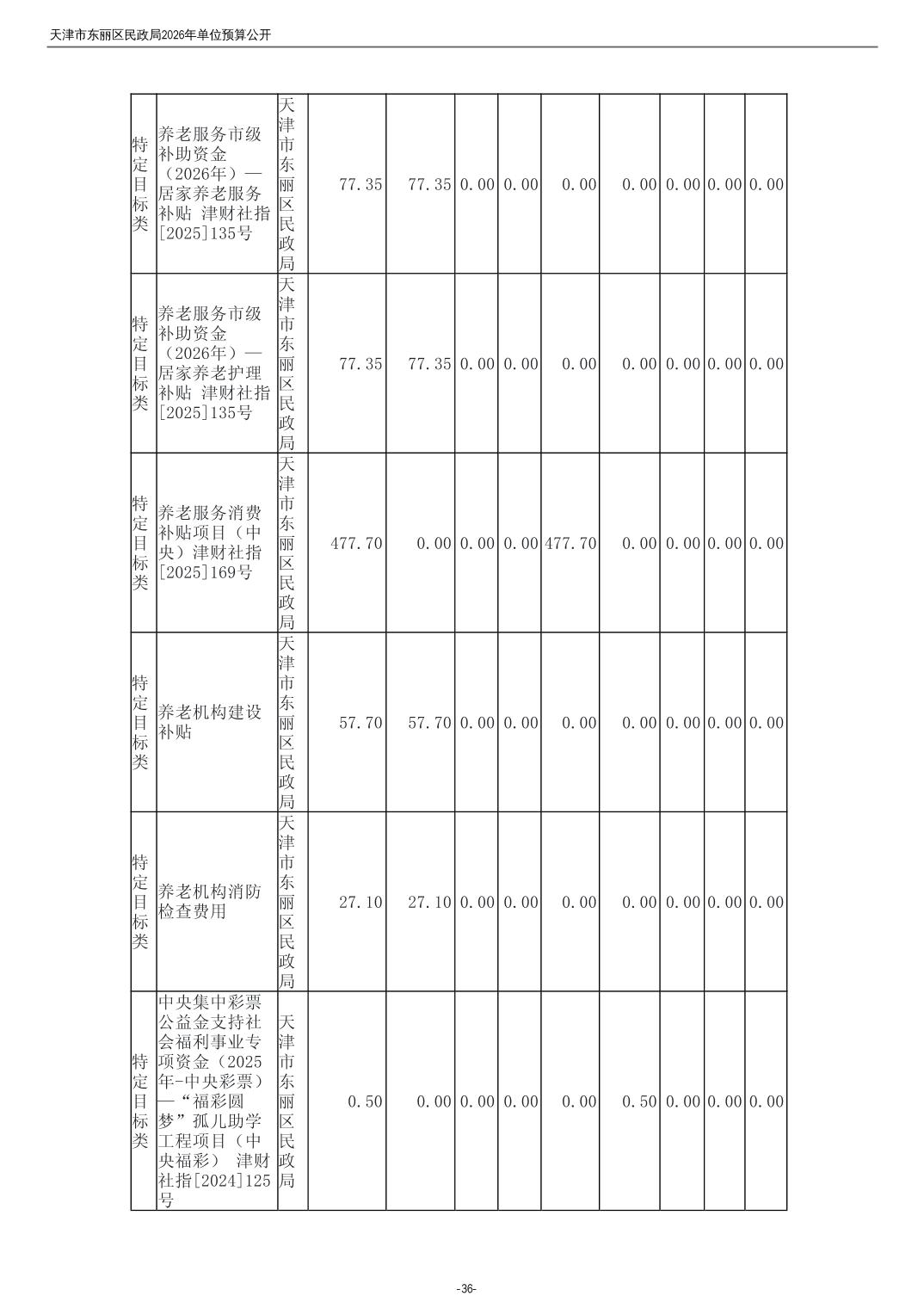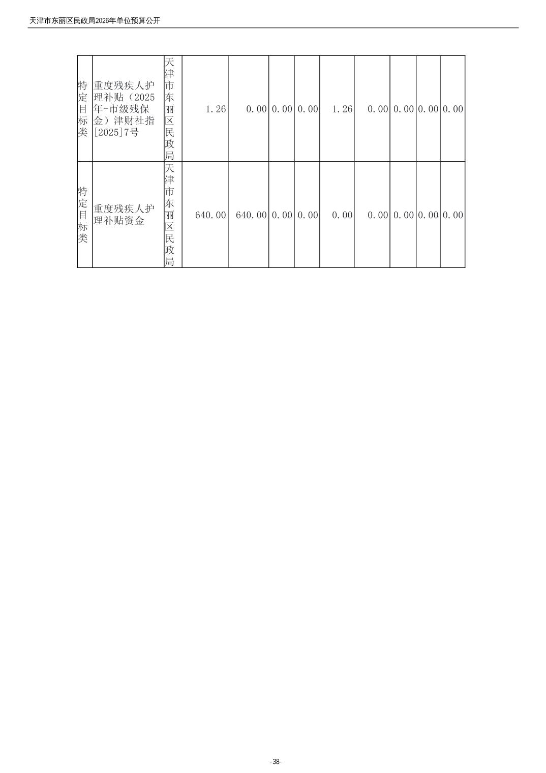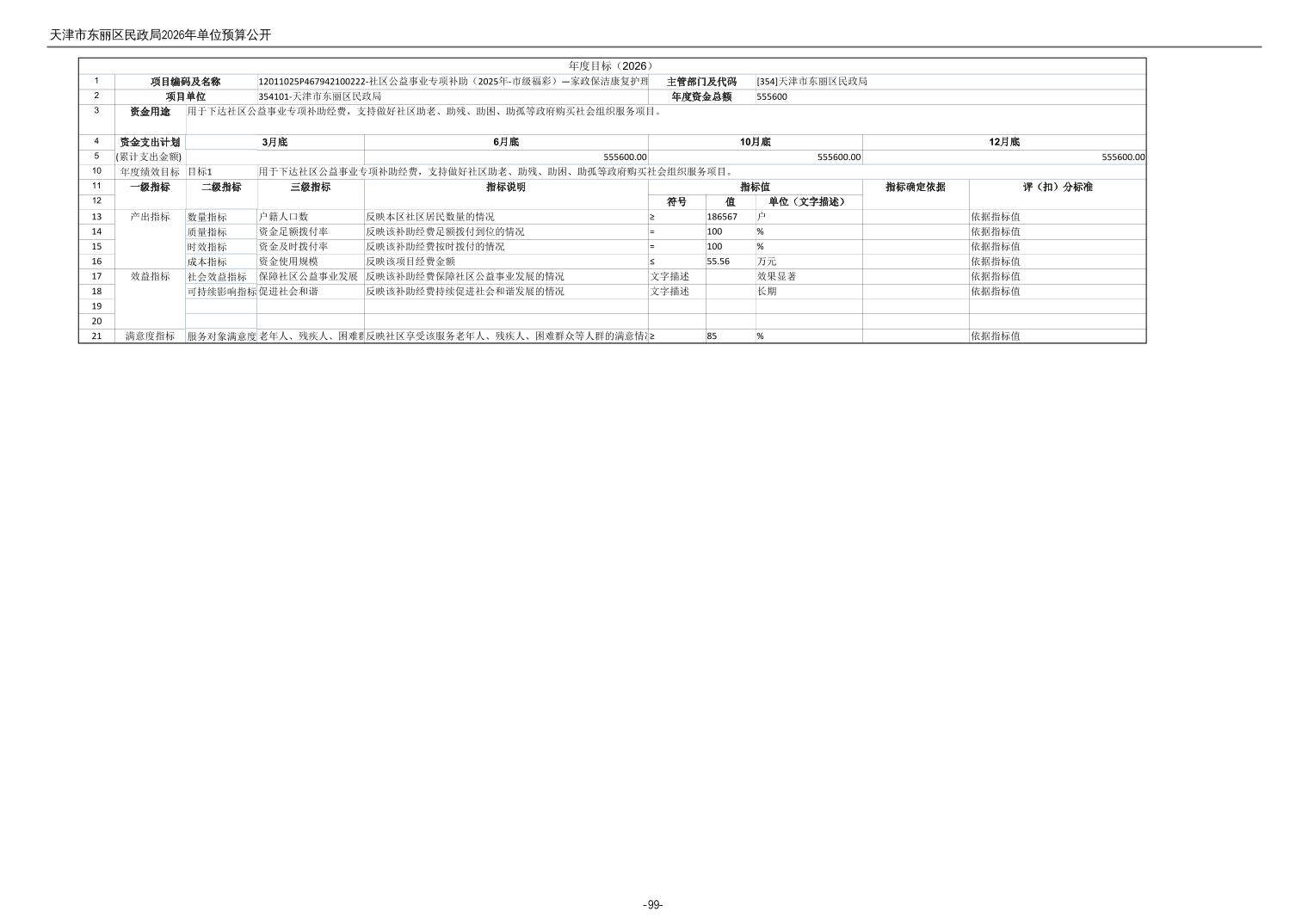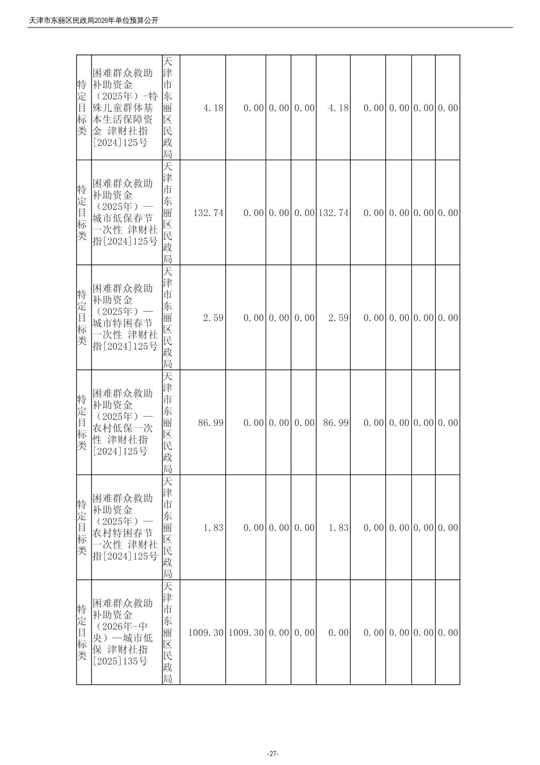 2026年度天津市东丽区民政局单位预算公开