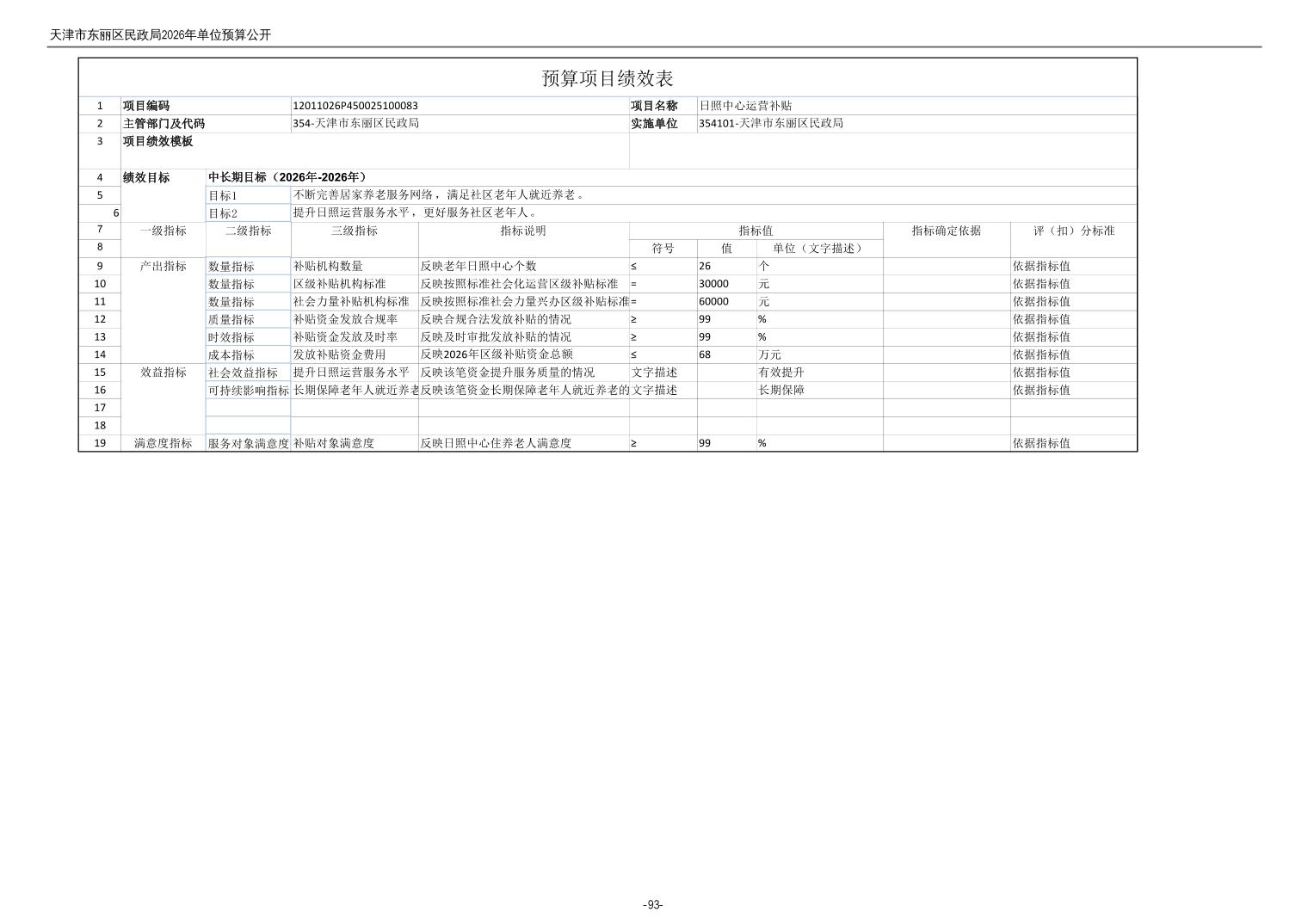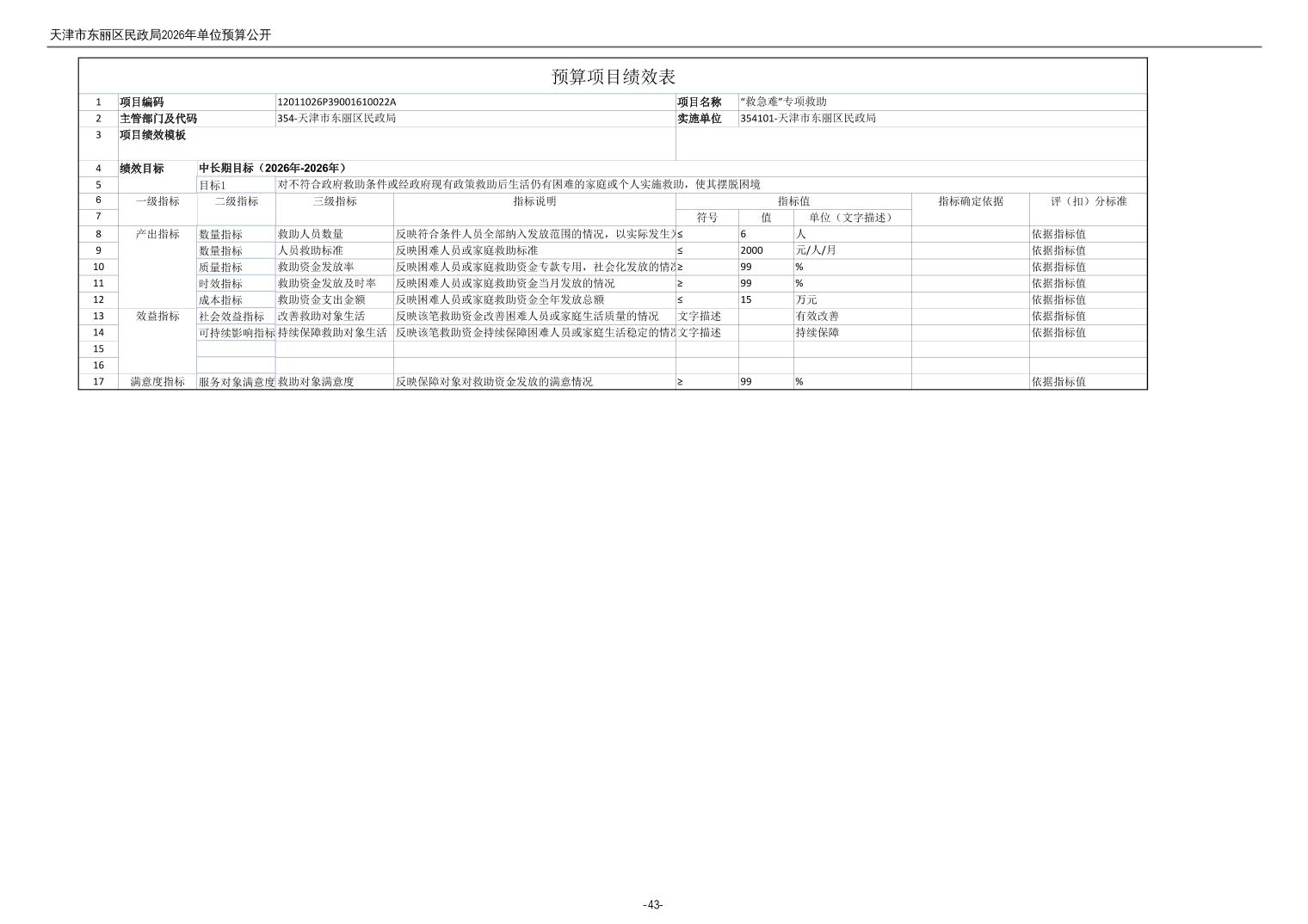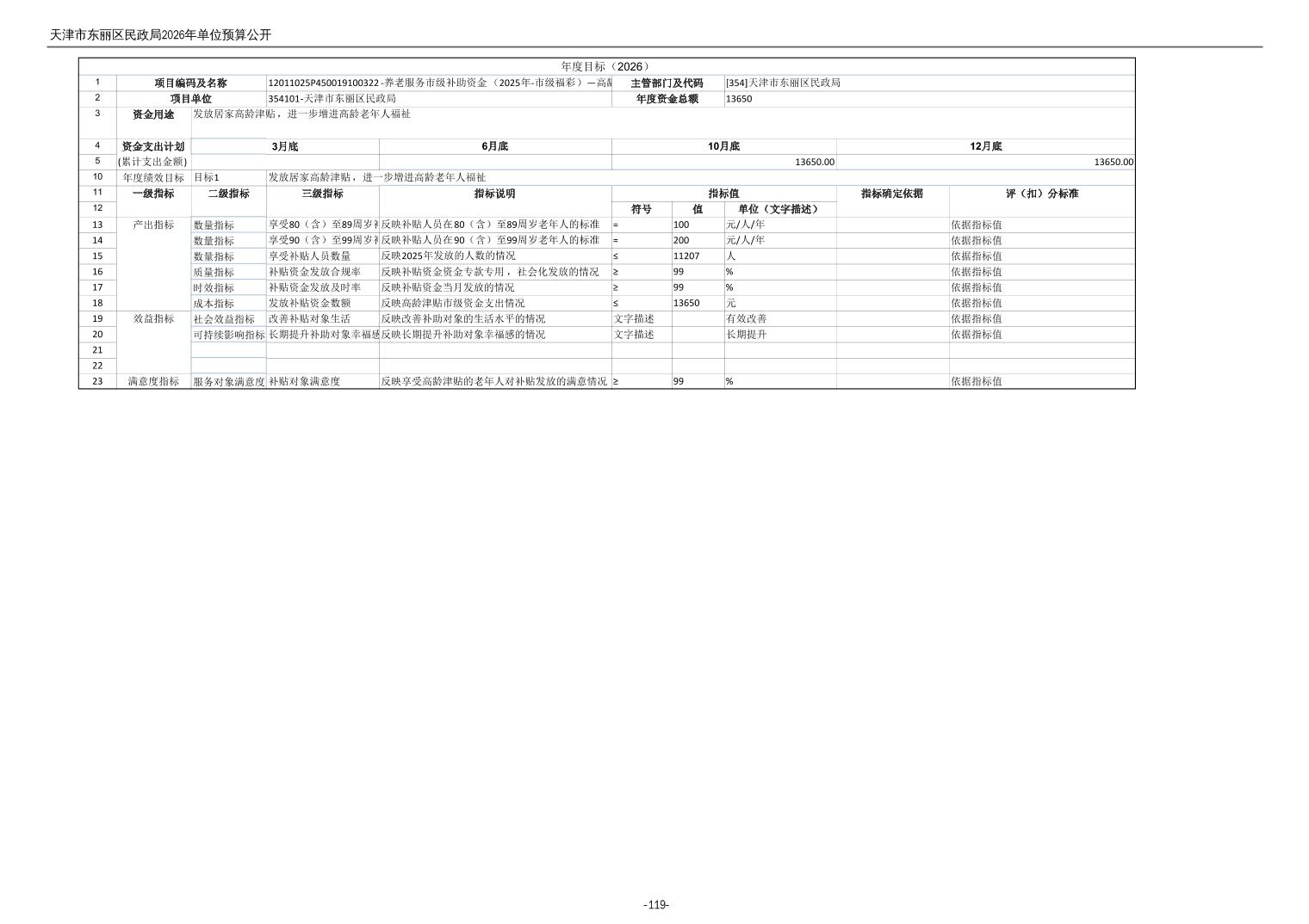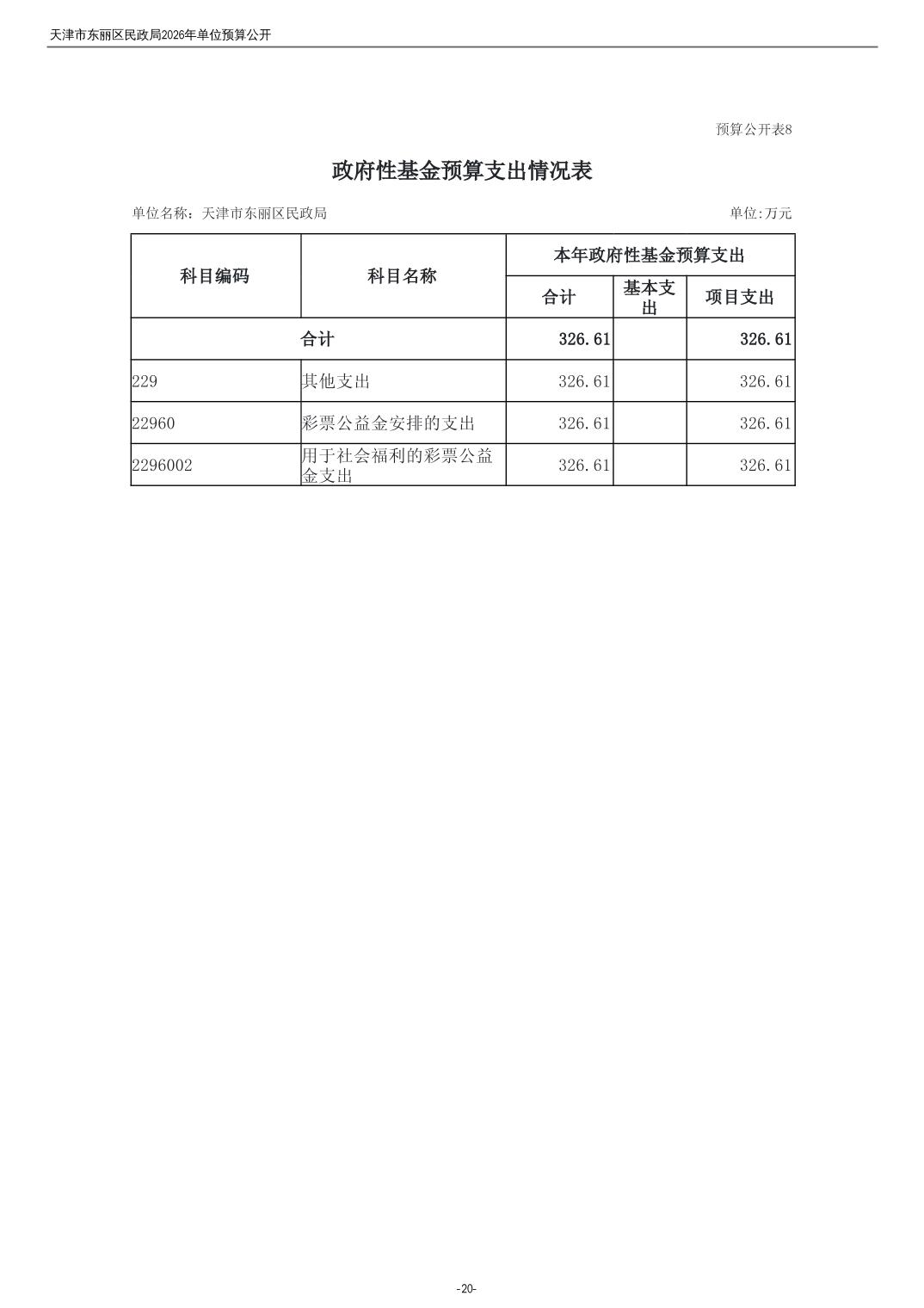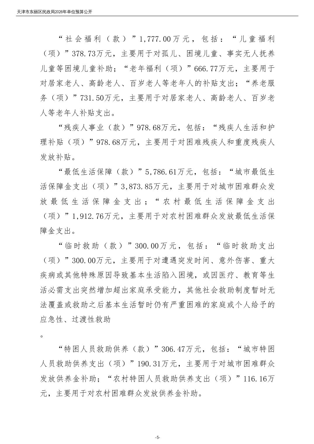 2026年度天津市东丽区民政局单位预算公开