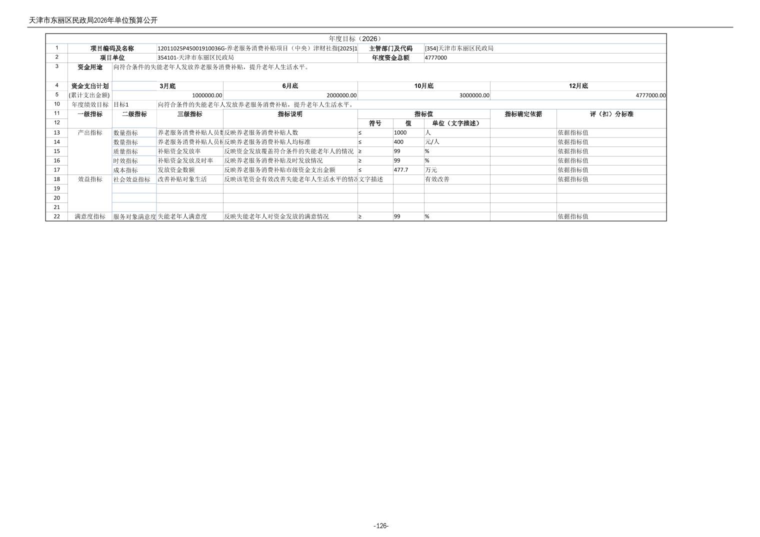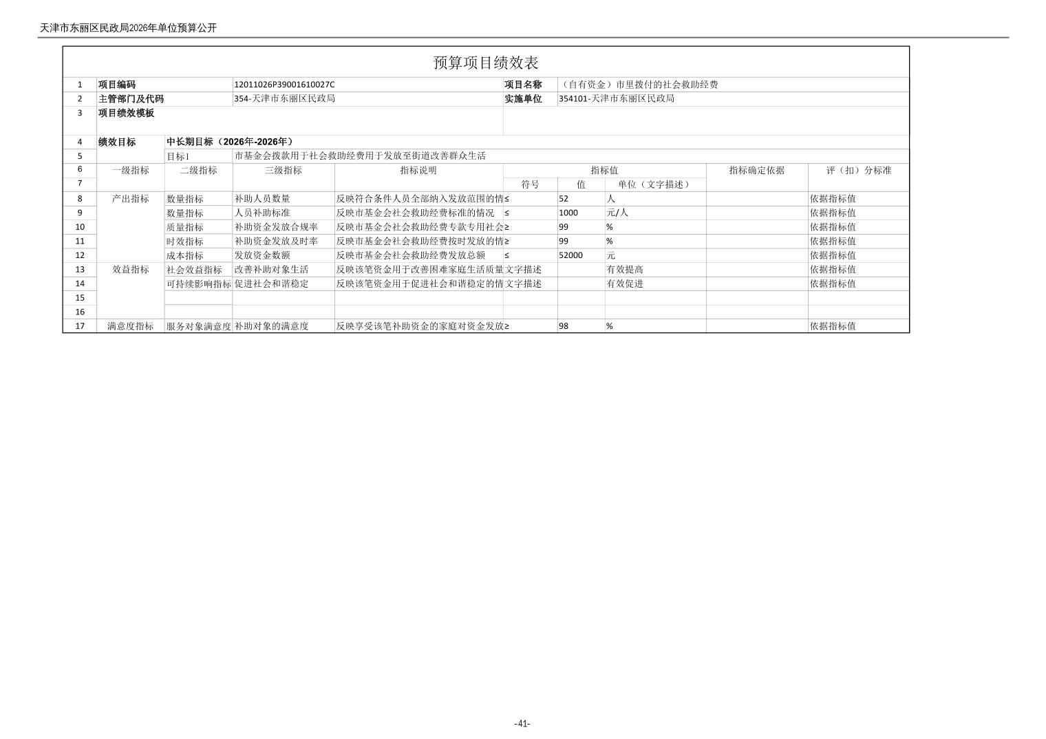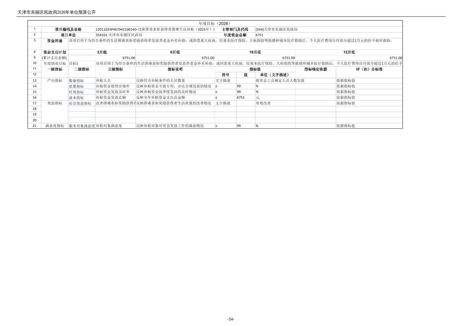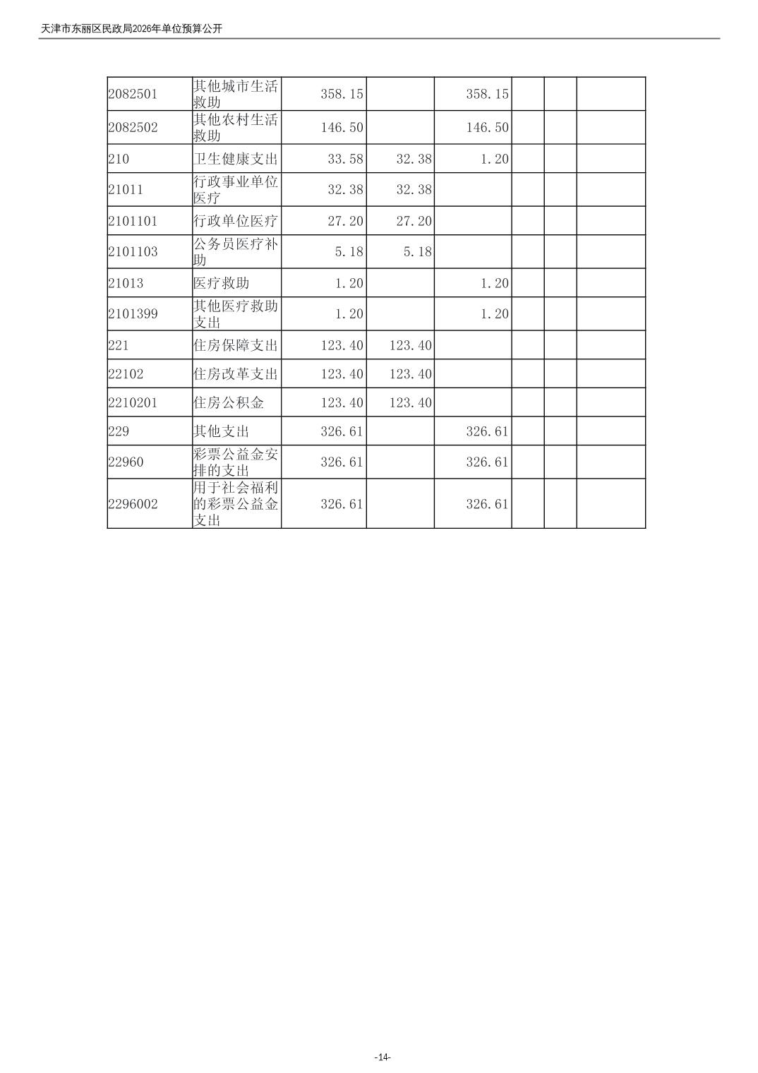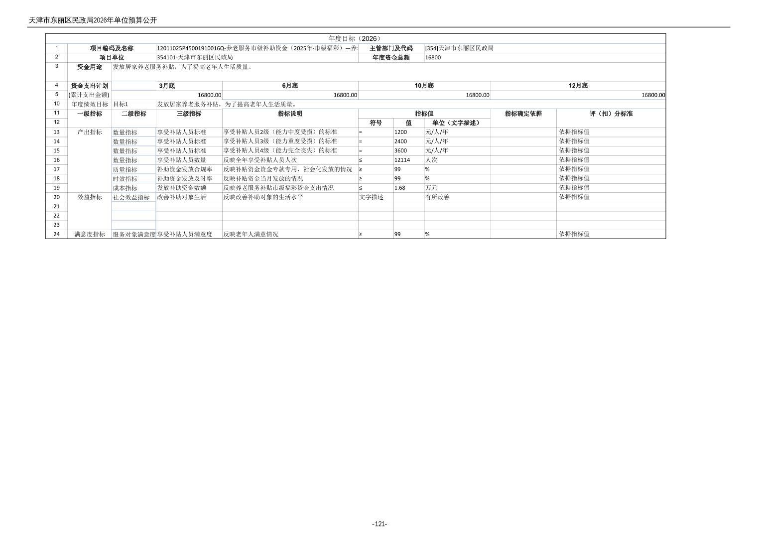 2026年度天津市东丽区民政局单位预算公开