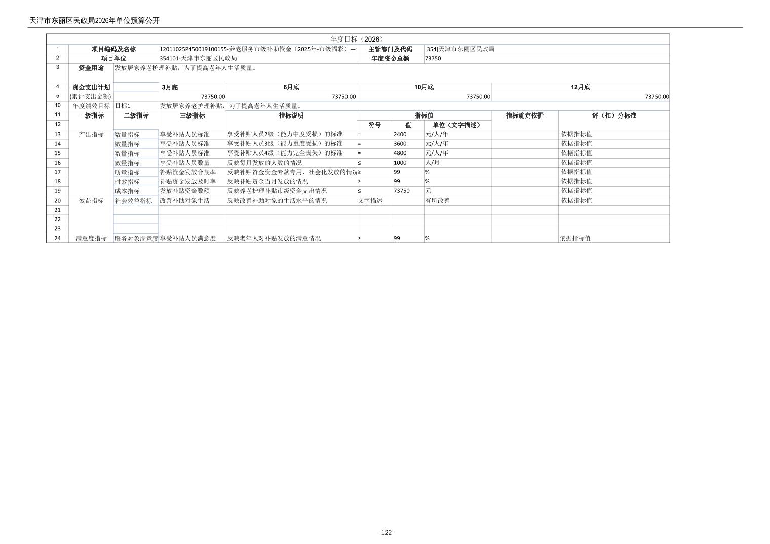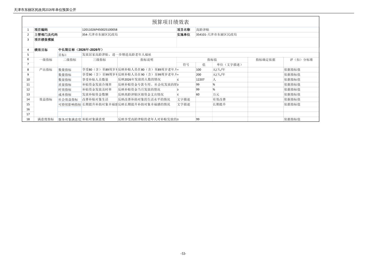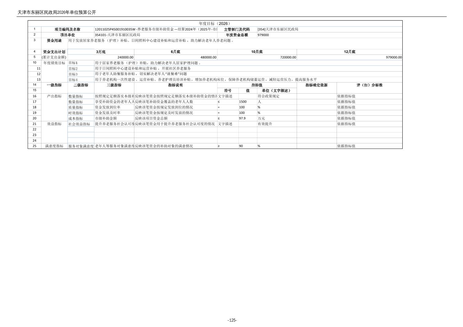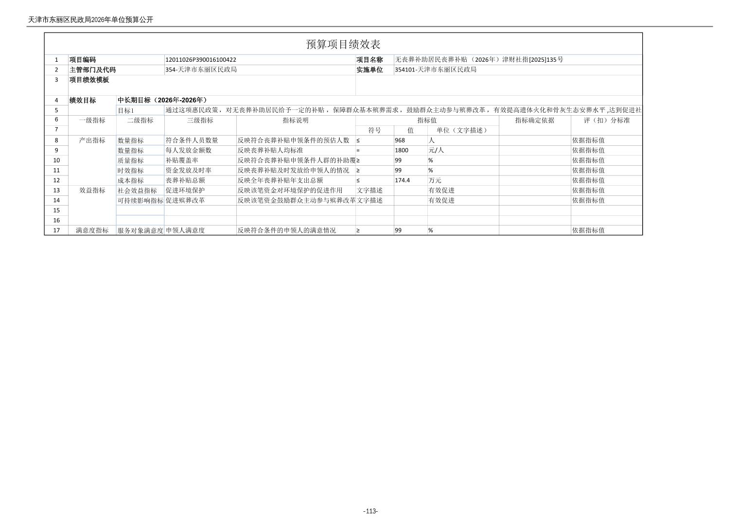 2026年度天津市东丽区民政局单位预算公开