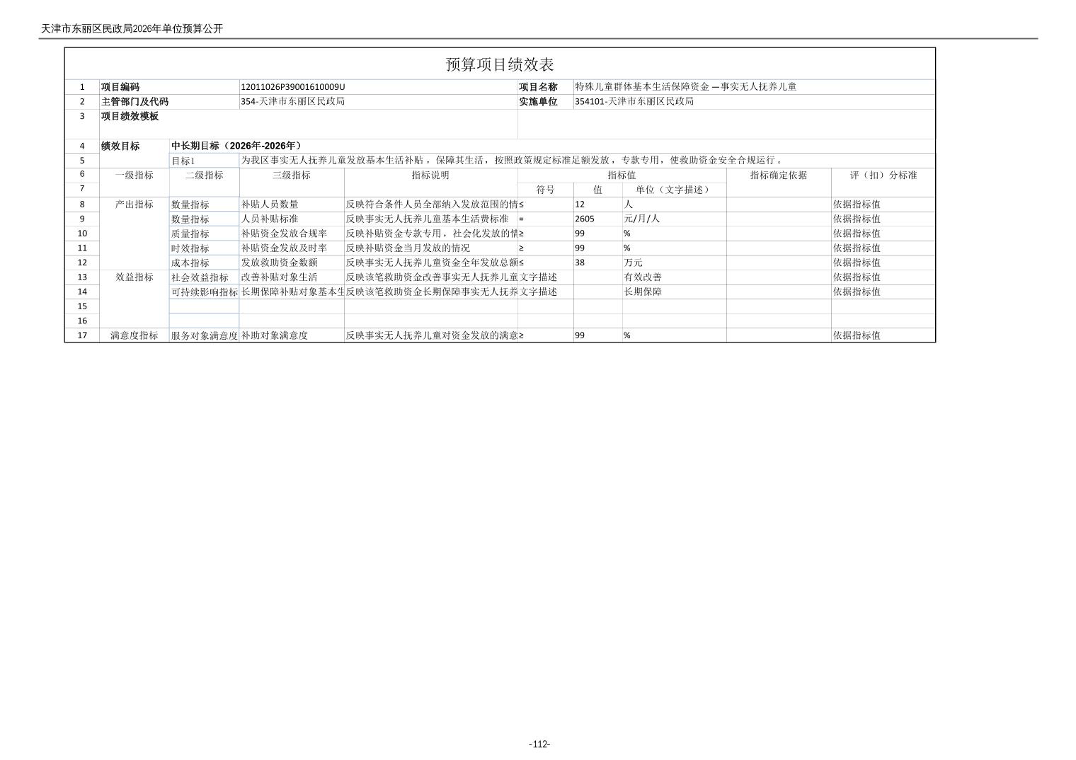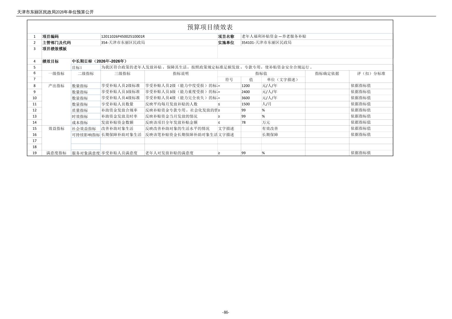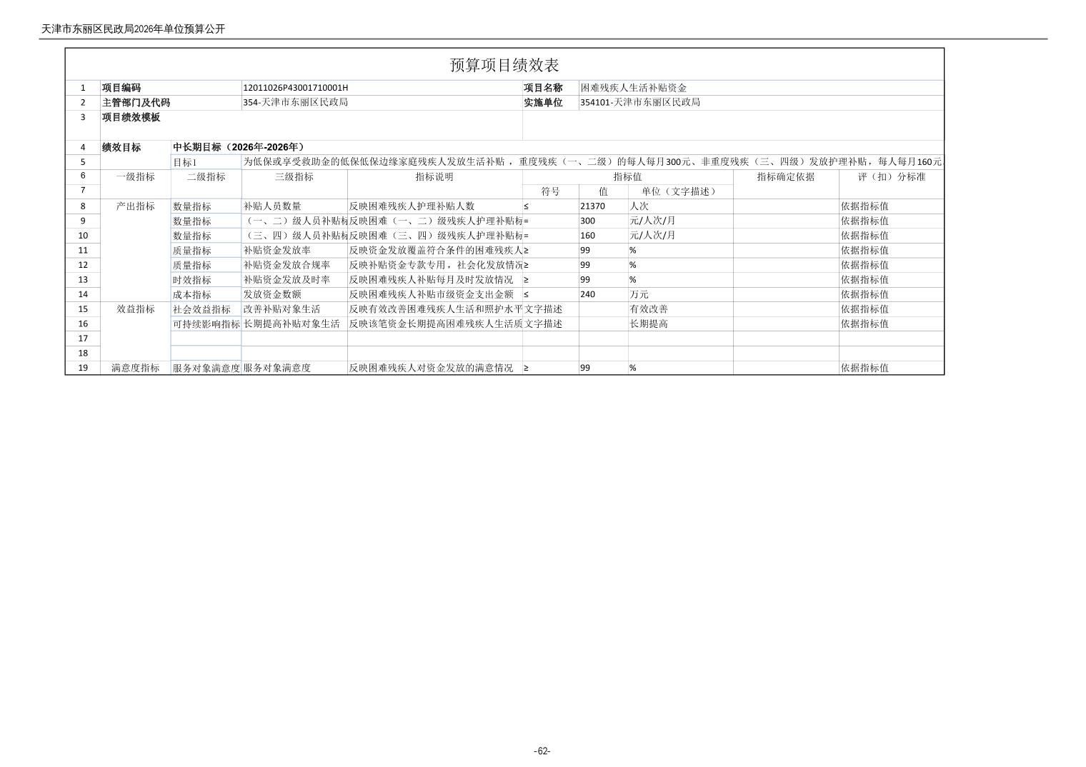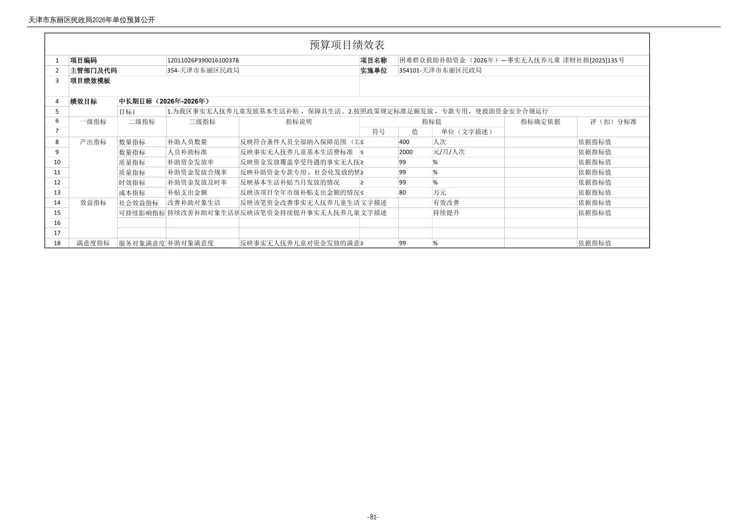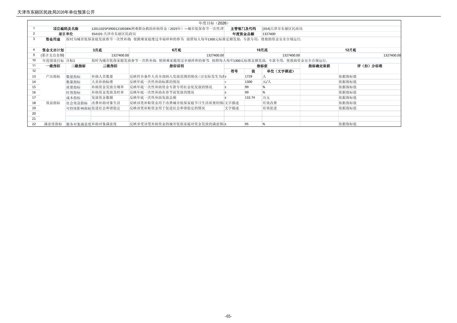 2026年度天津市东丽区民政局单位预算公开