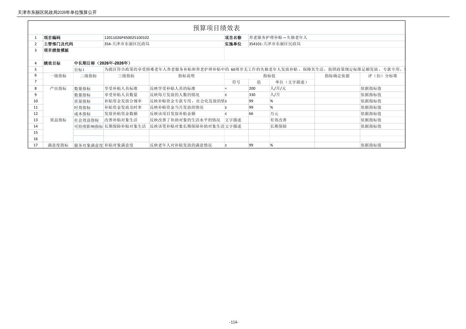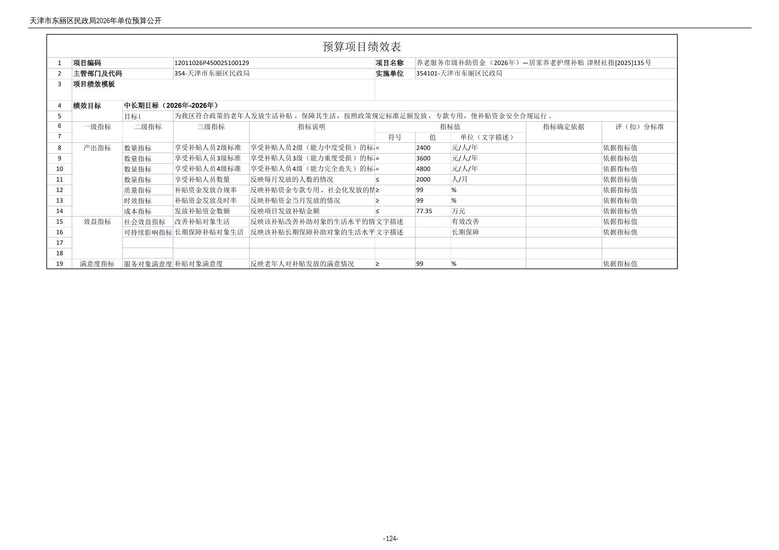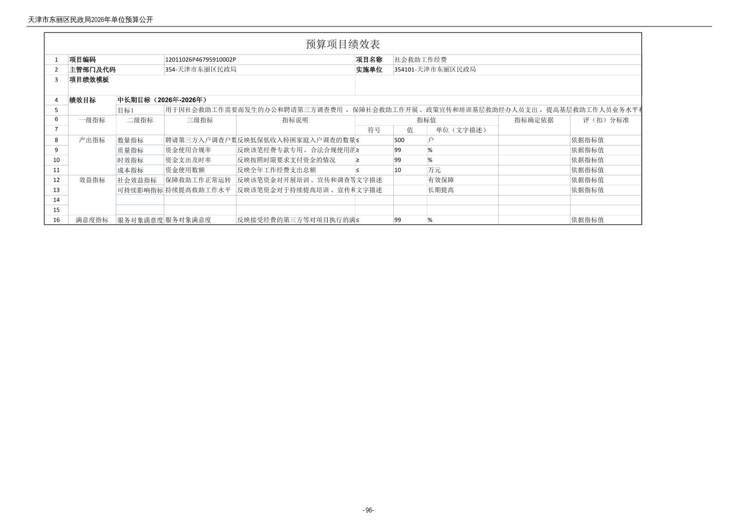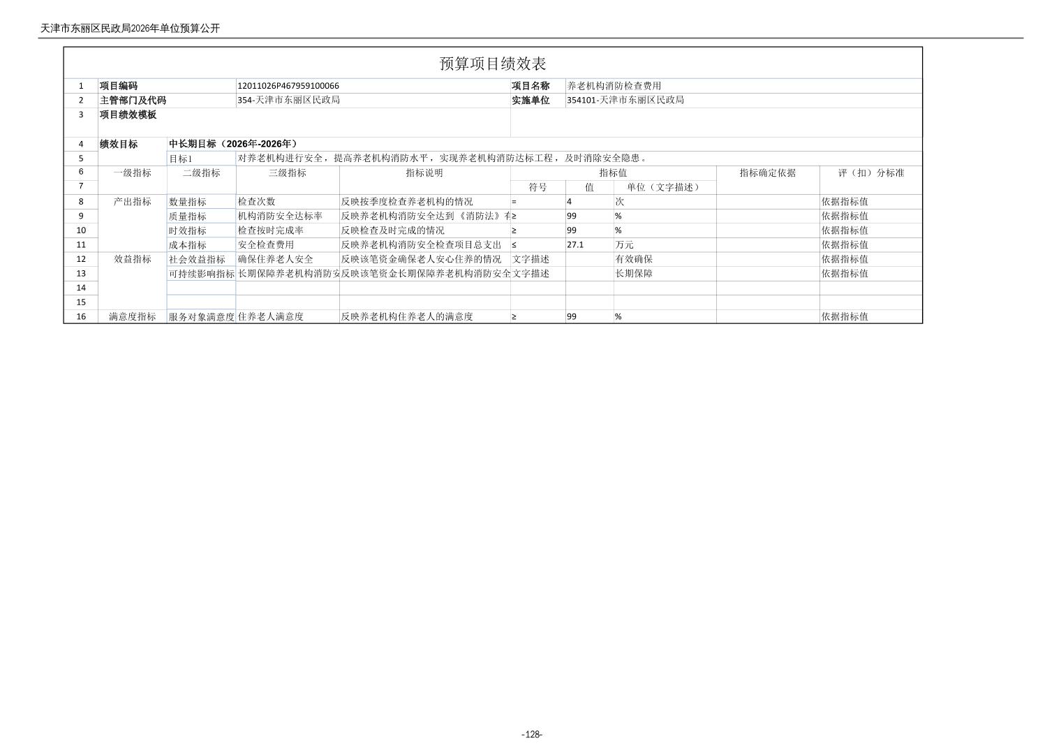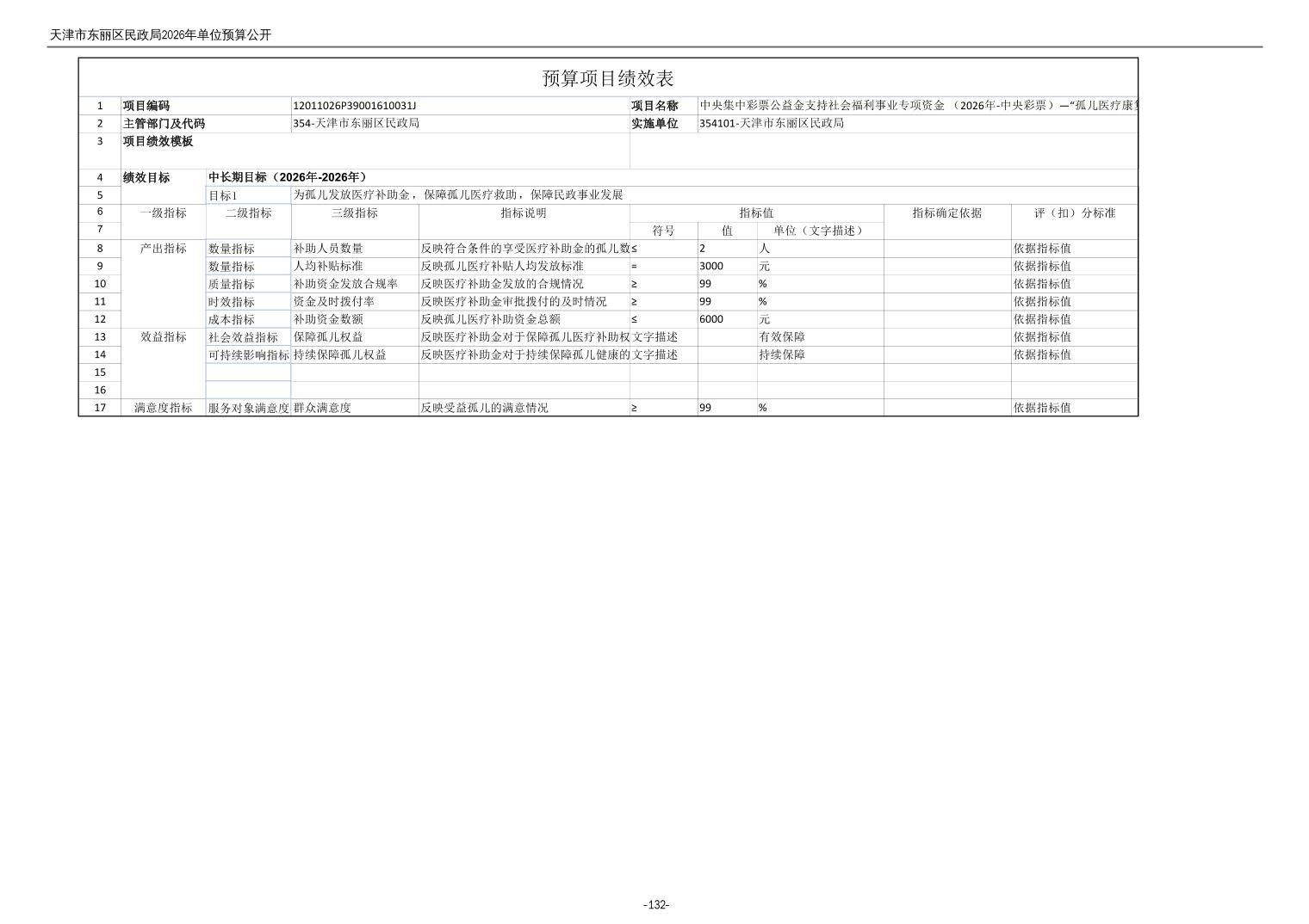 2026年度天津市东丽区民政局单位预算公开