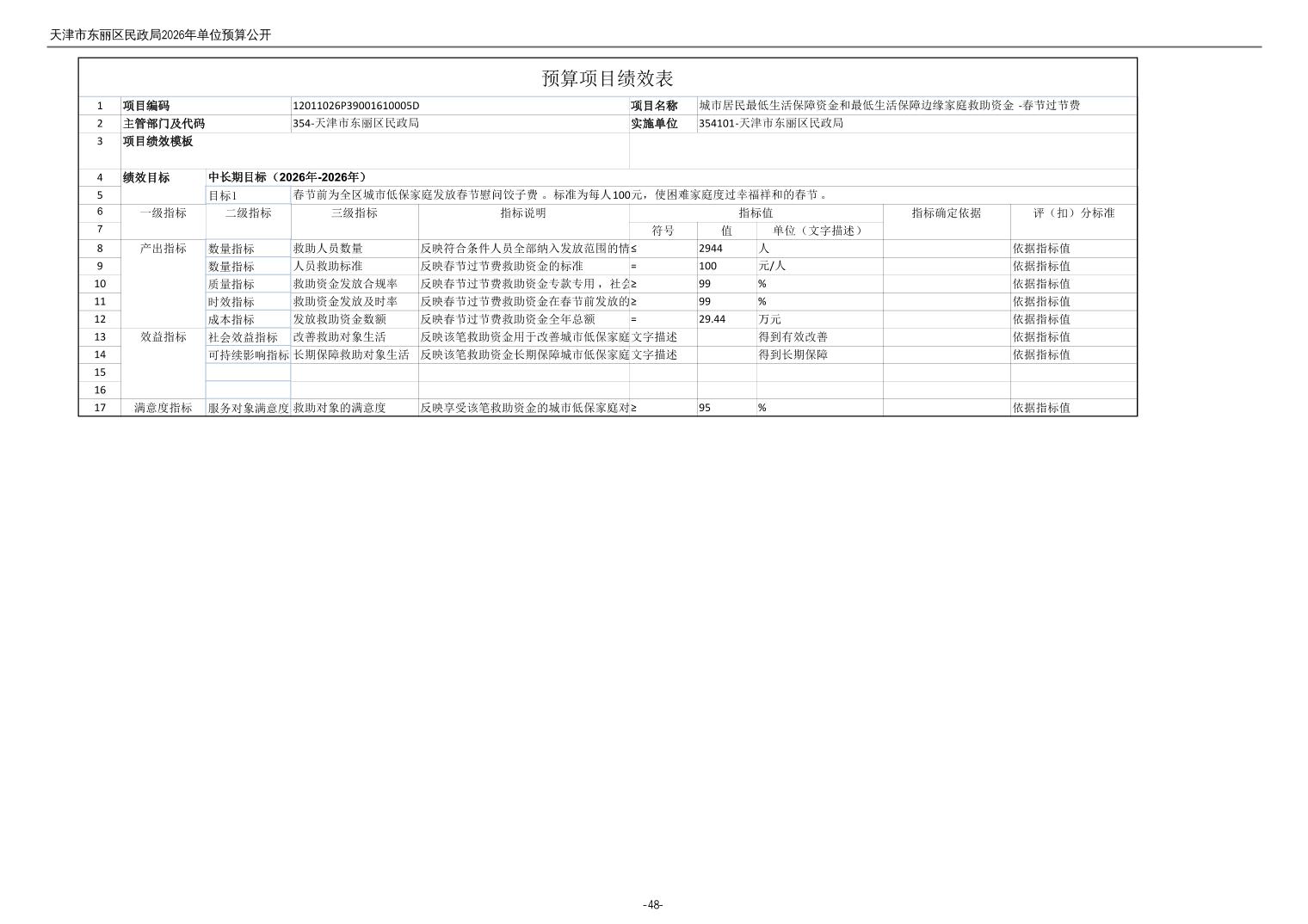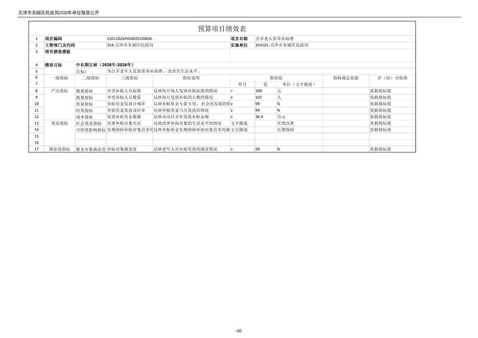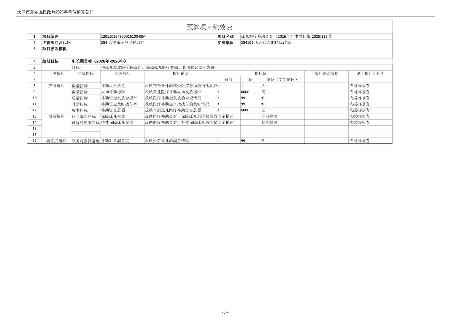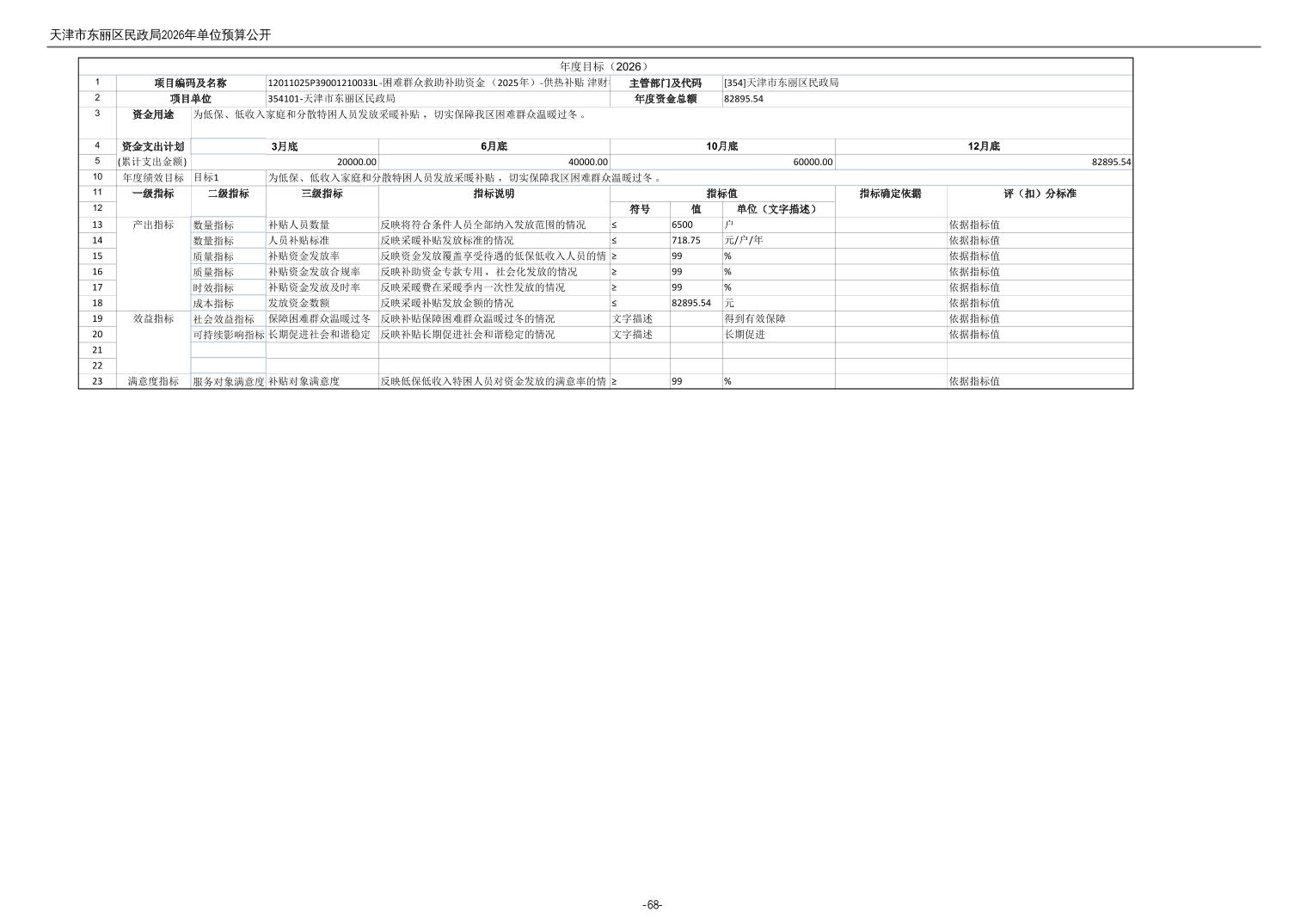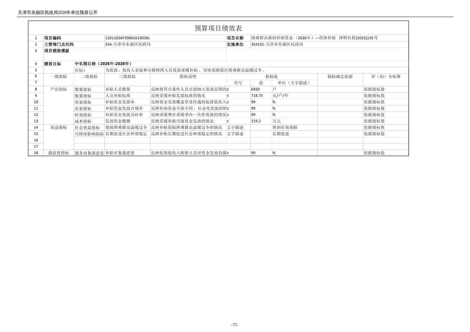 2026年度天津市东丽区民政局单位预算公开
