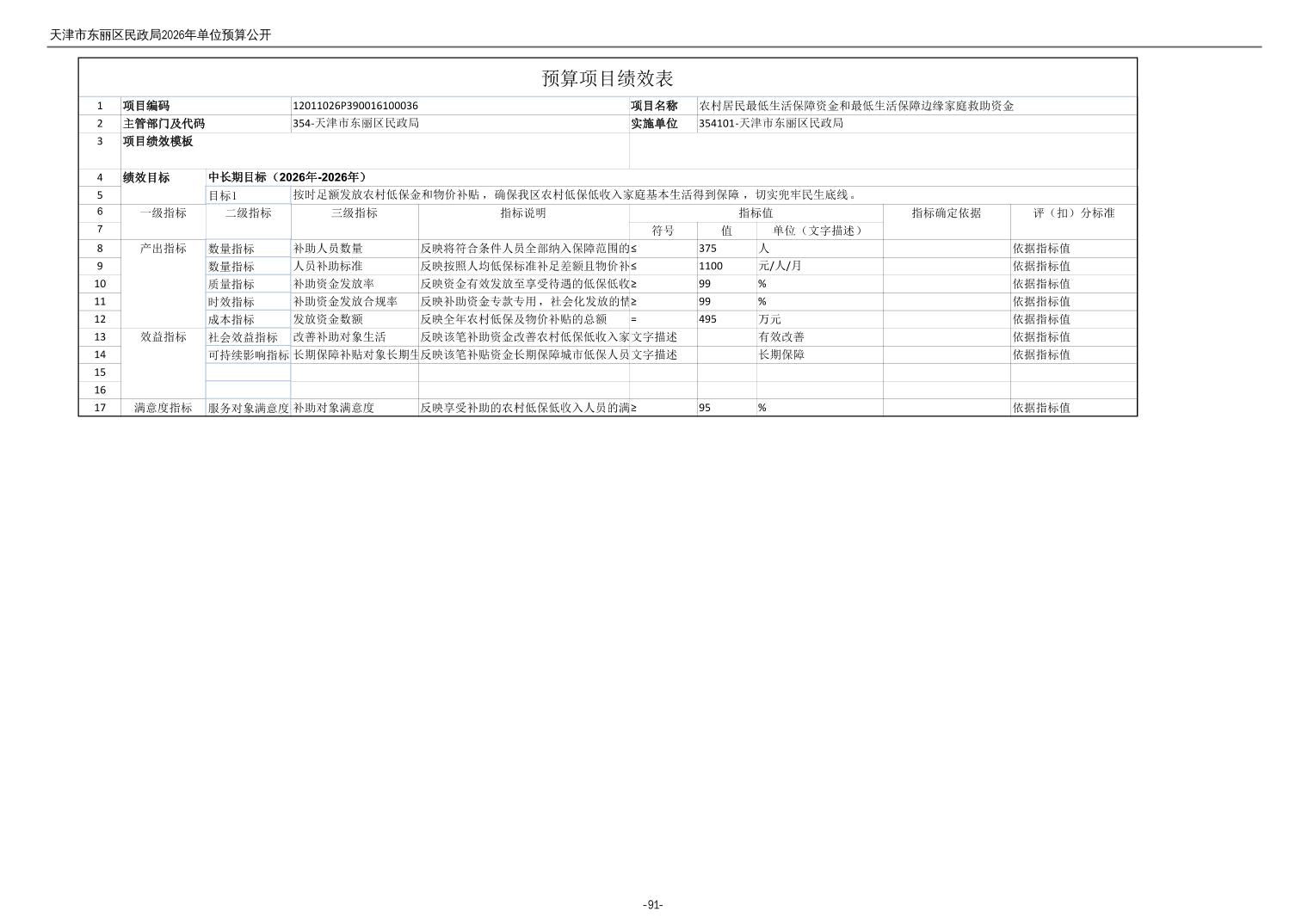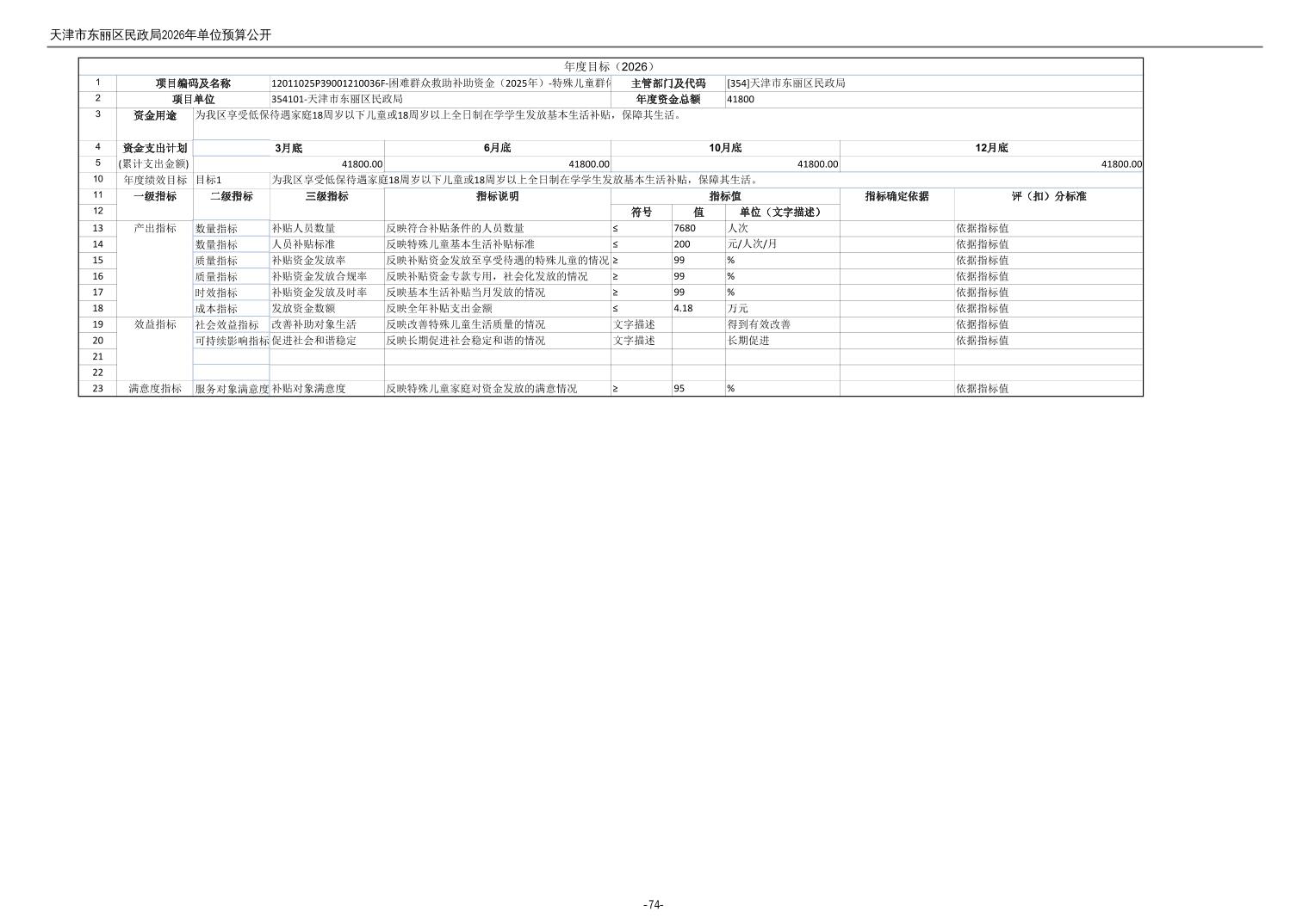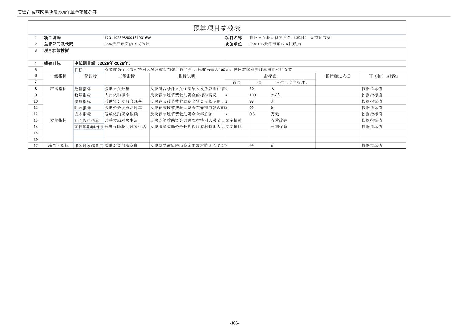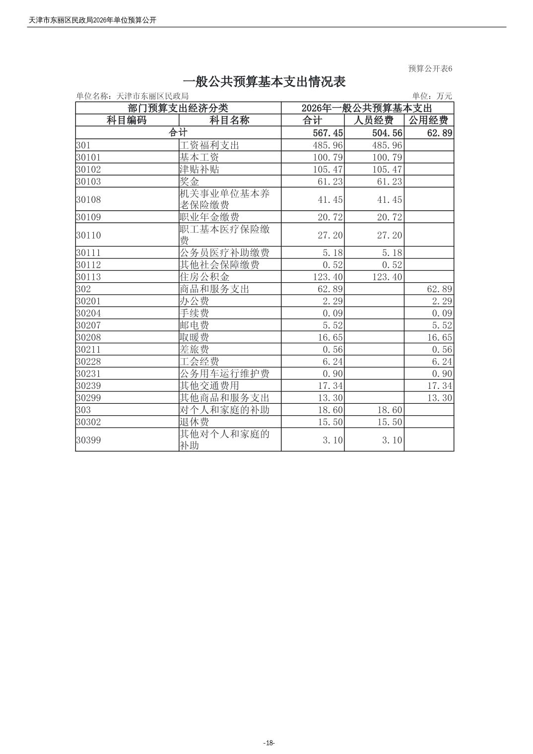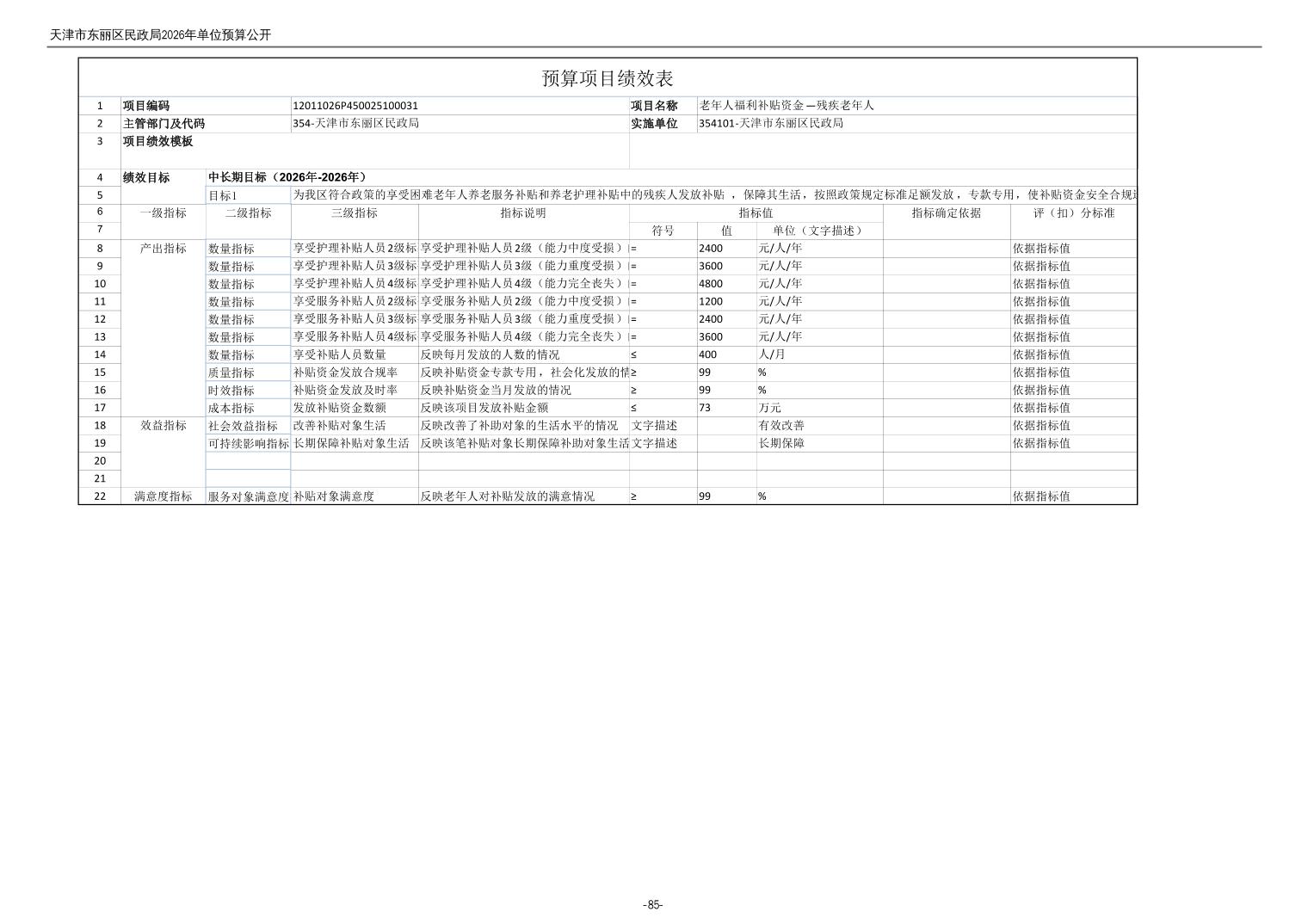 2026年度天津市东丽区民政局单位预算公开