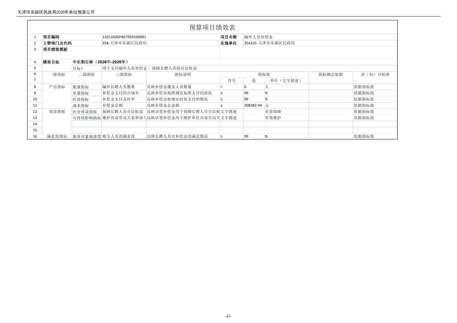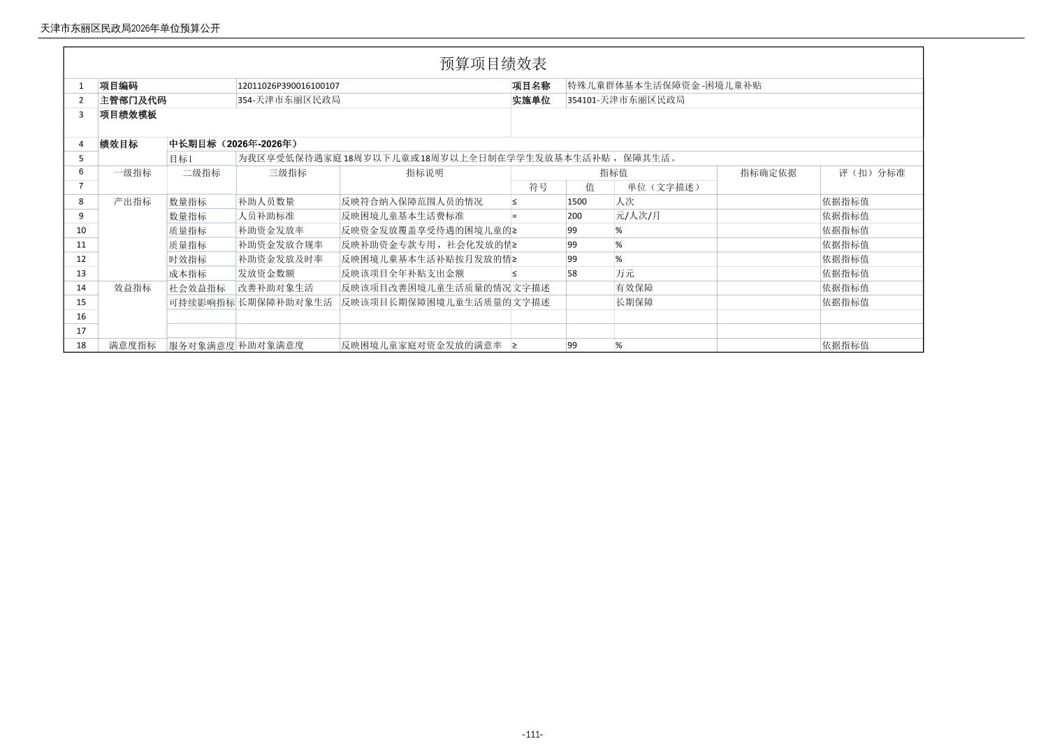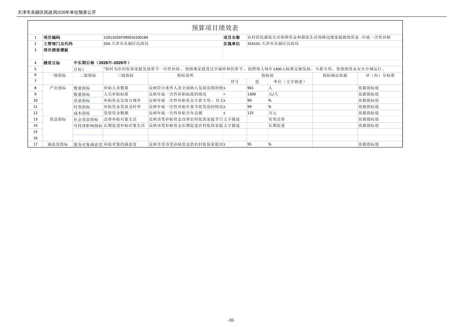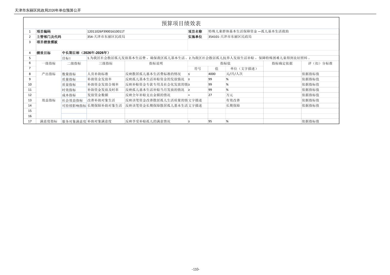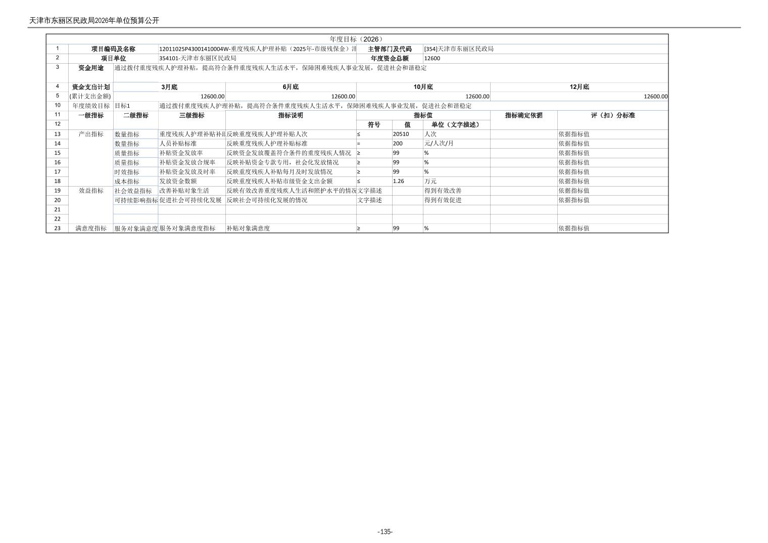 2026年度天津市东丽区民政局单位预算公开