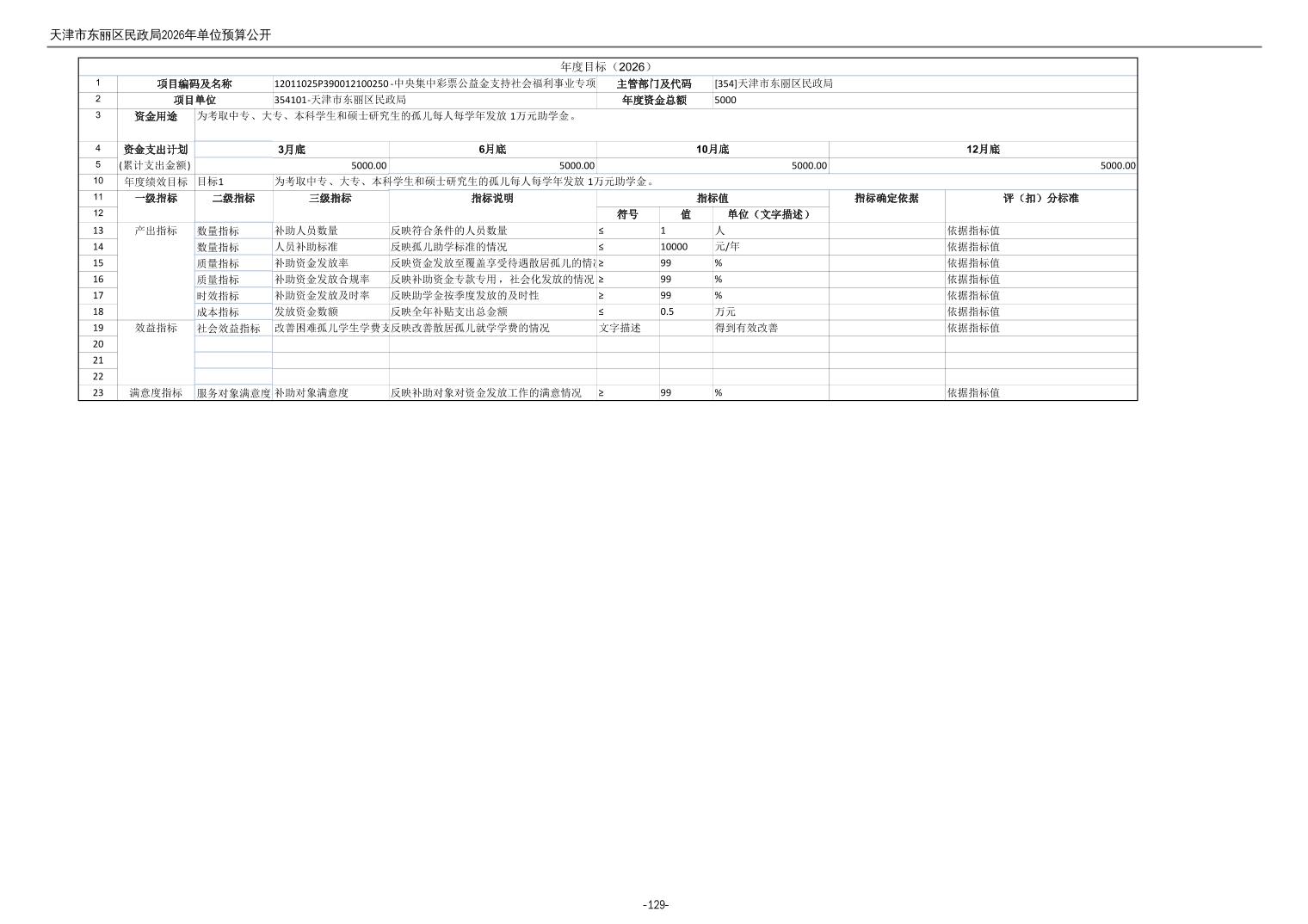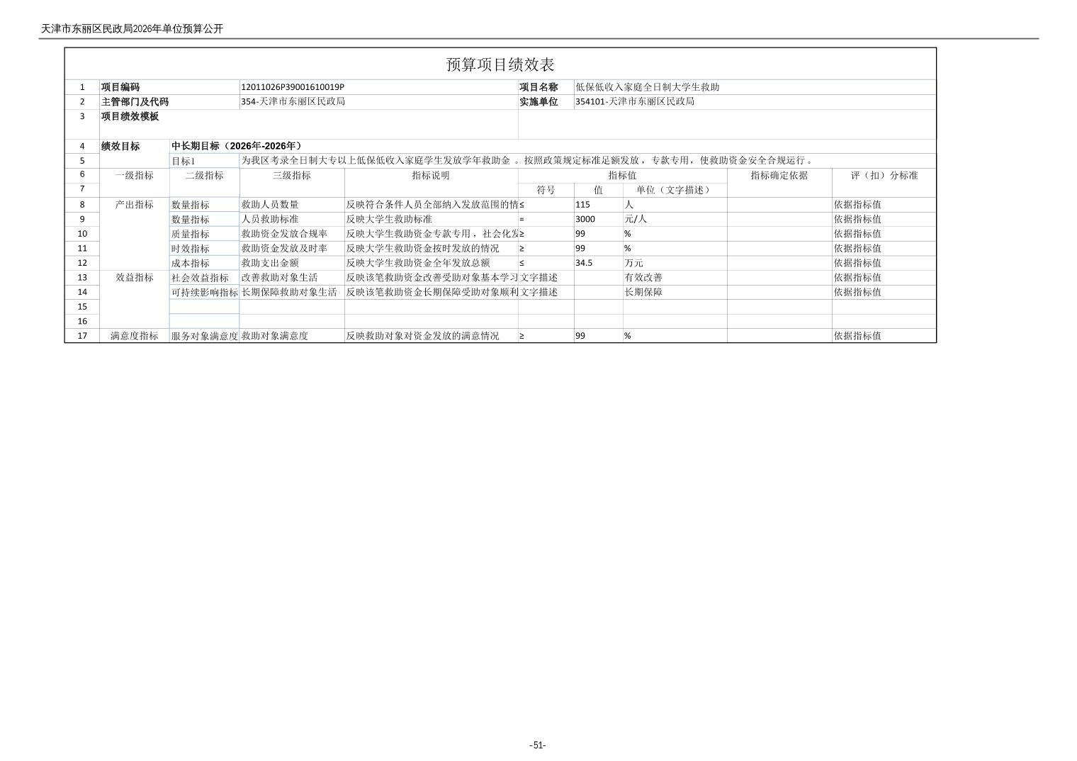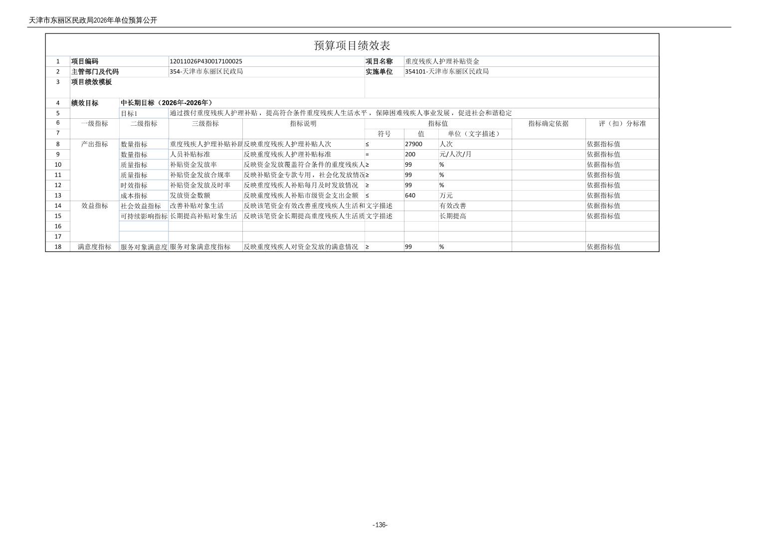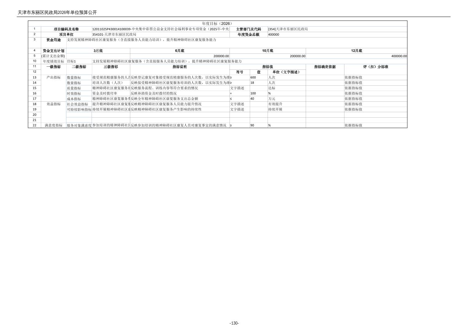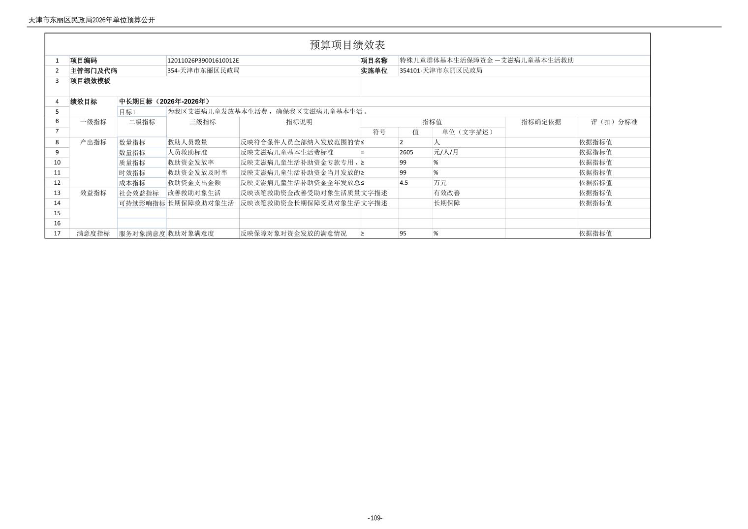 2026年度天津市东丽区民政局单位预算公开