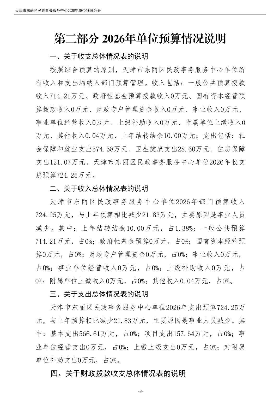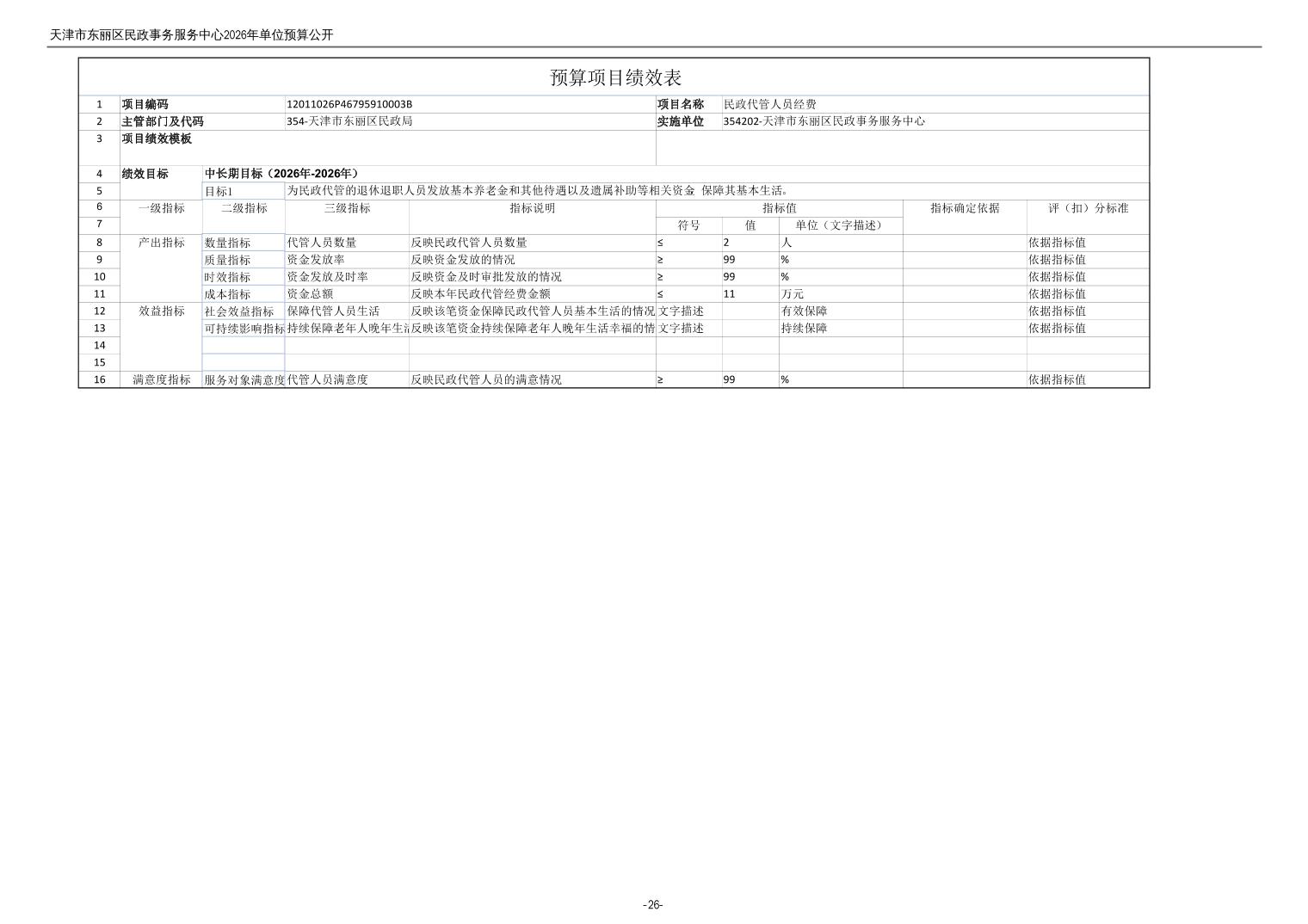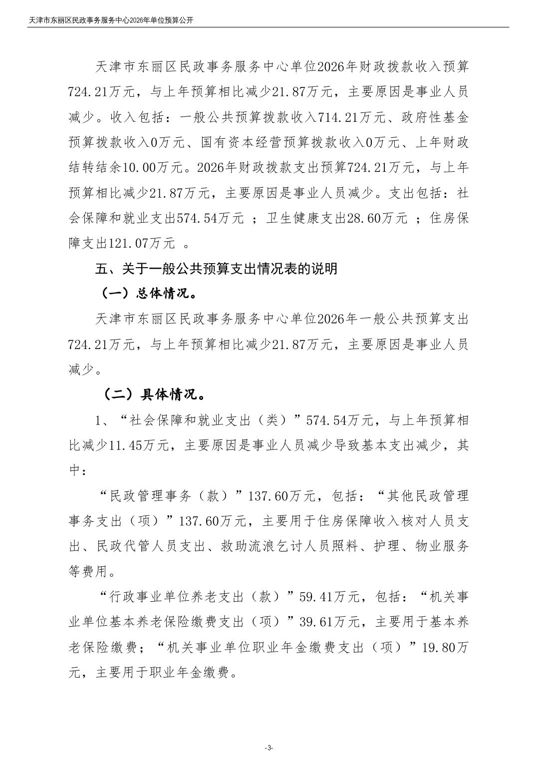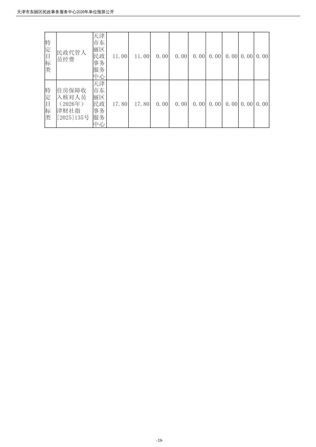 2026年度天津市东丽区民政事务服务中心单位预算公开
