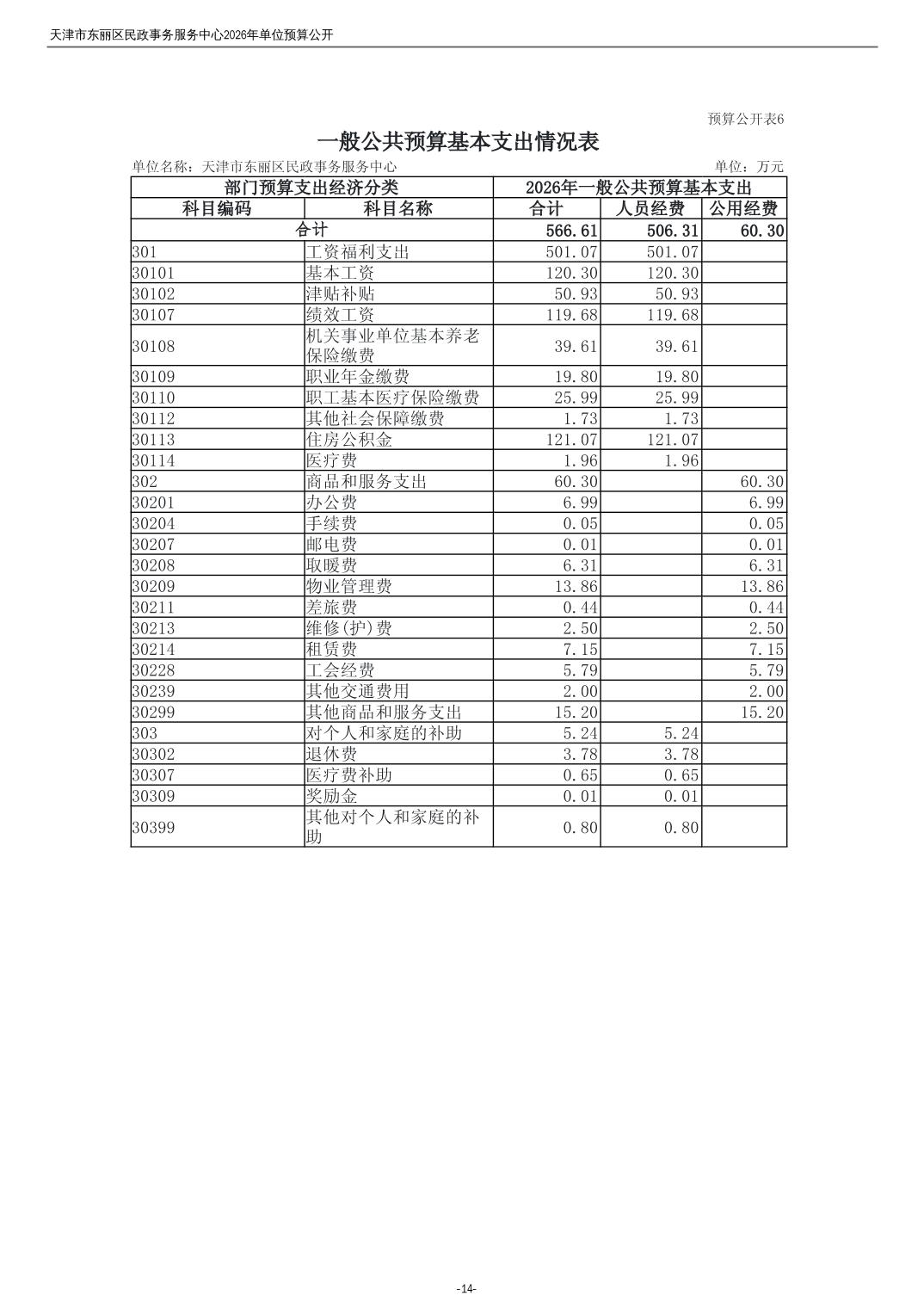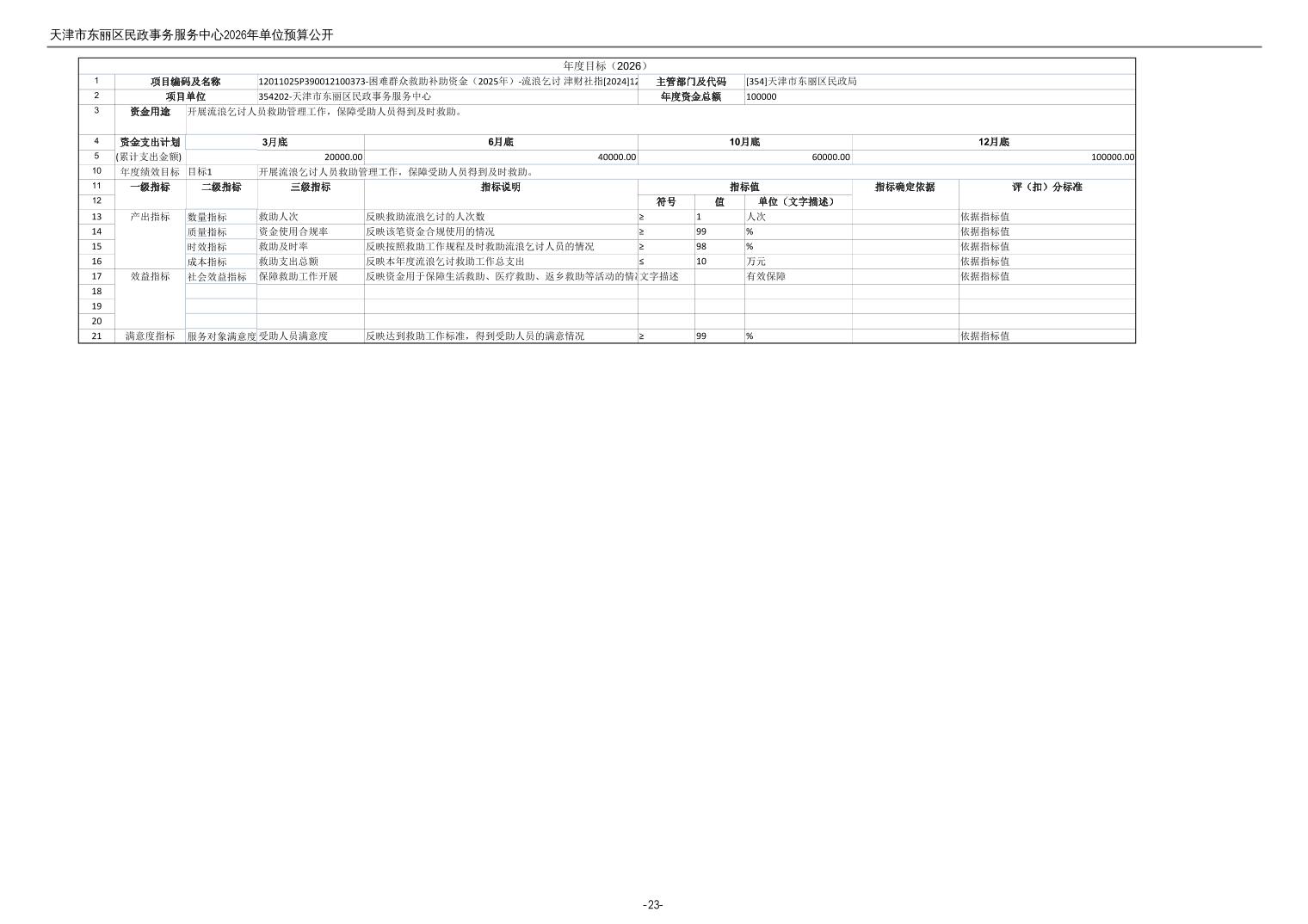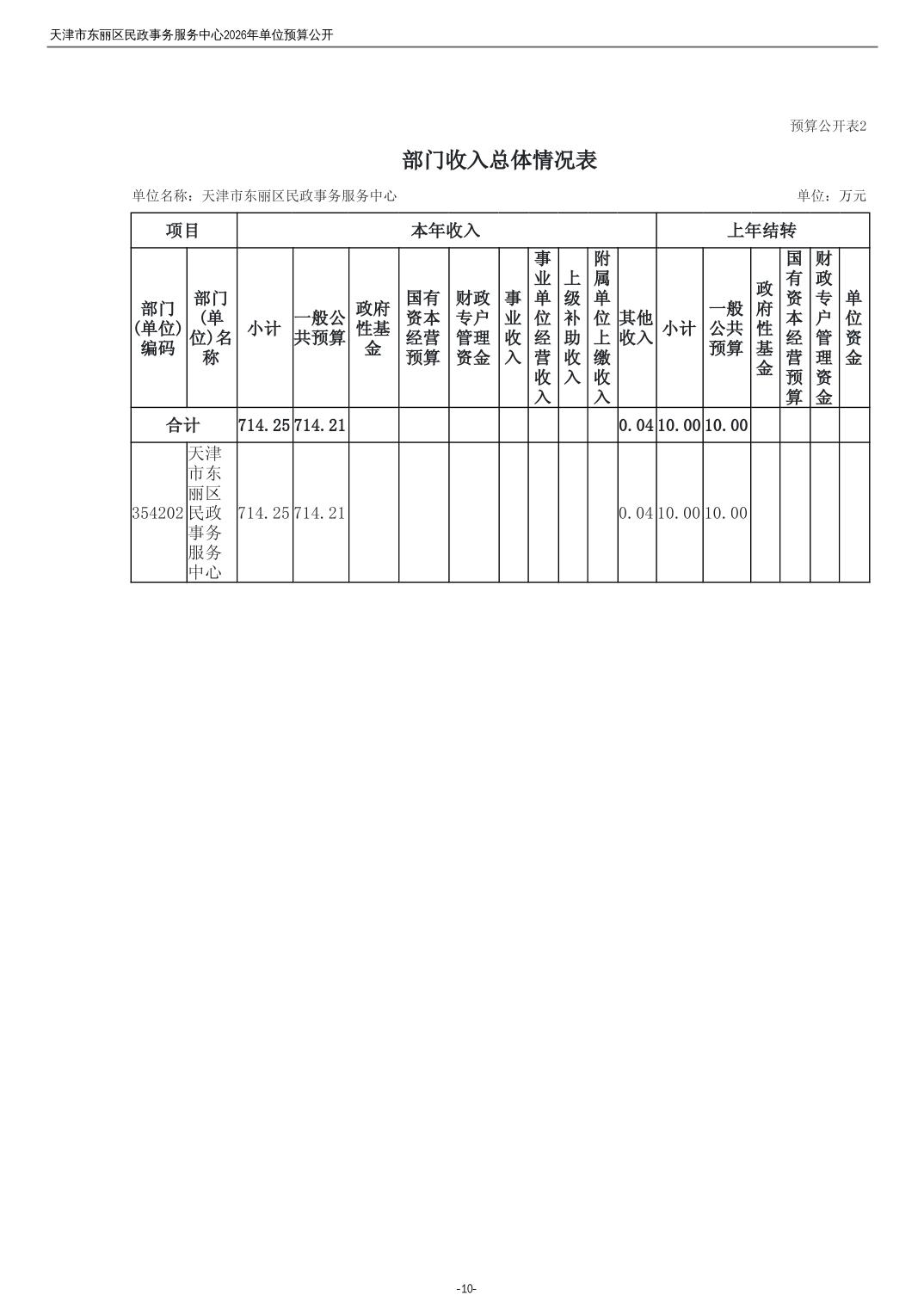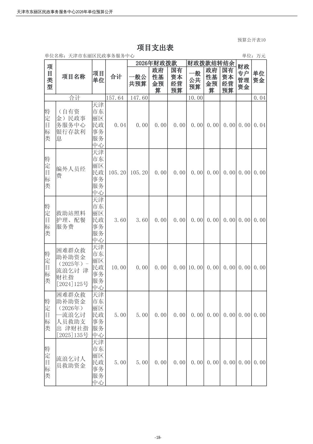2026年度天津市东丽区民政事务服务中心单位预算公开
