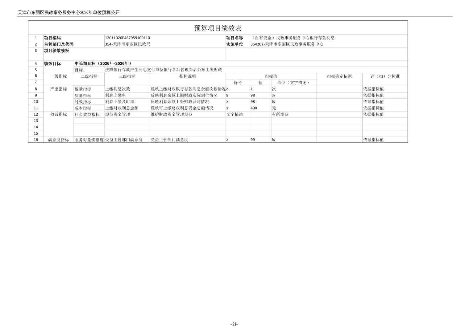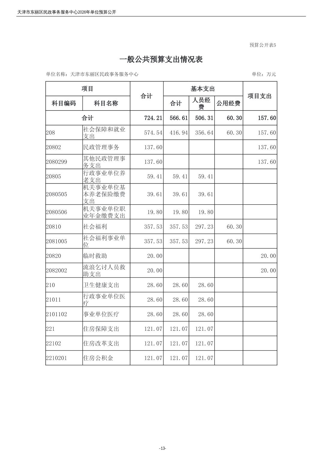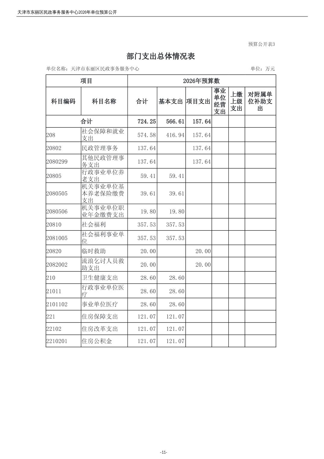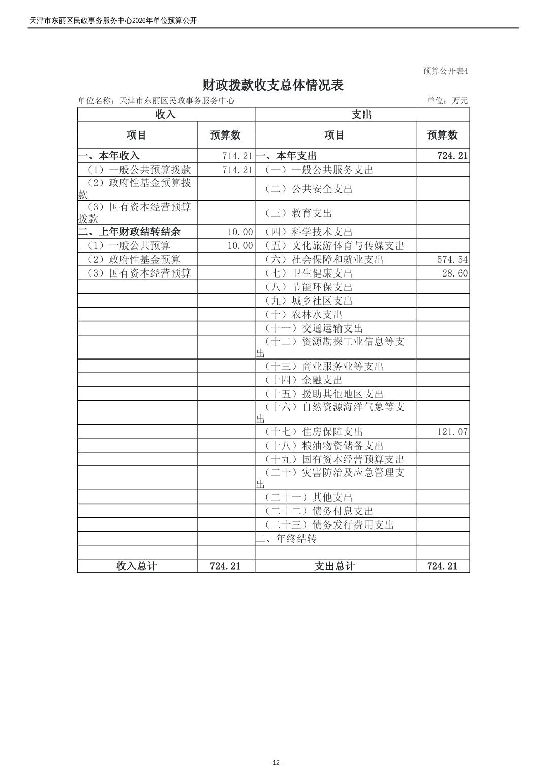 2026年度天津市东丽区民政事务服务中心单位预算公开