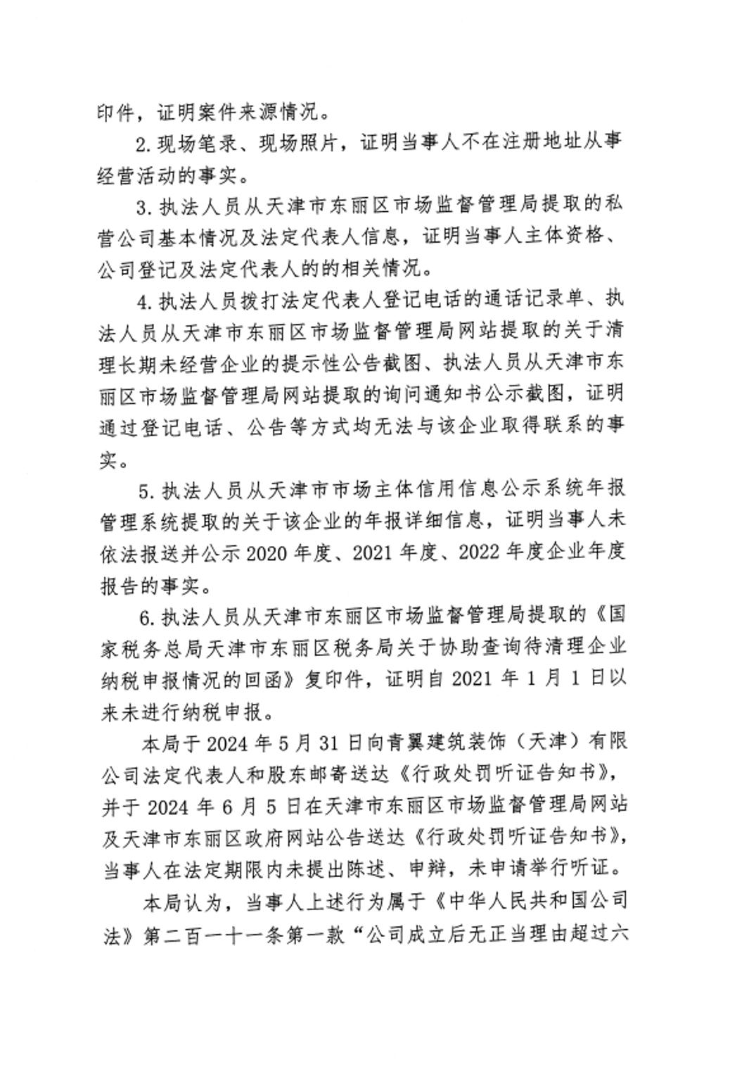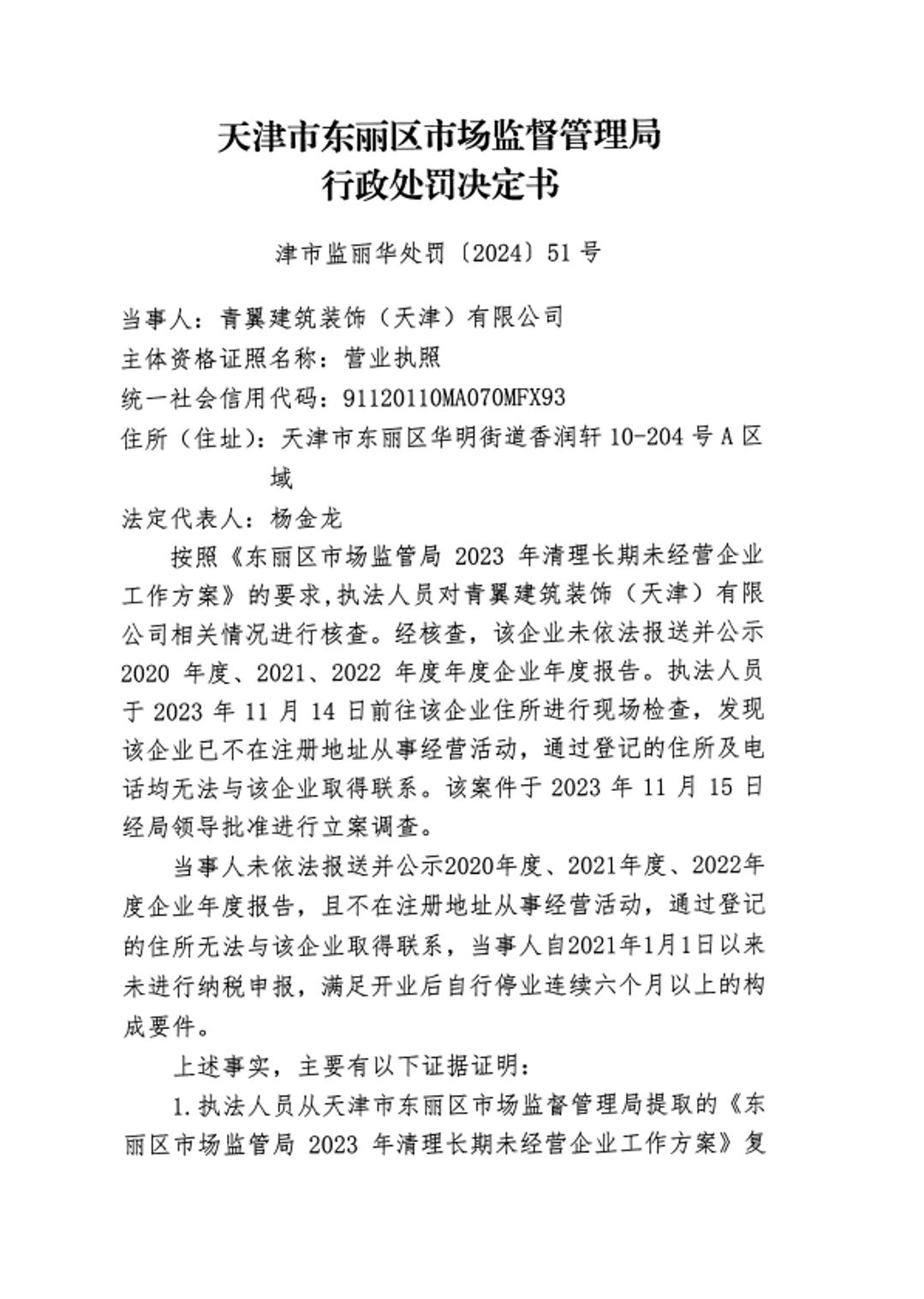 行政处罚决定书--青翼建筑装饰(天津)有限公司