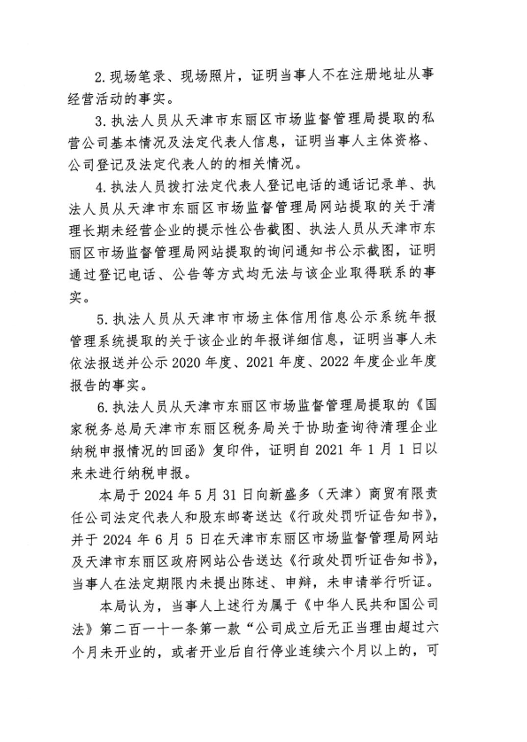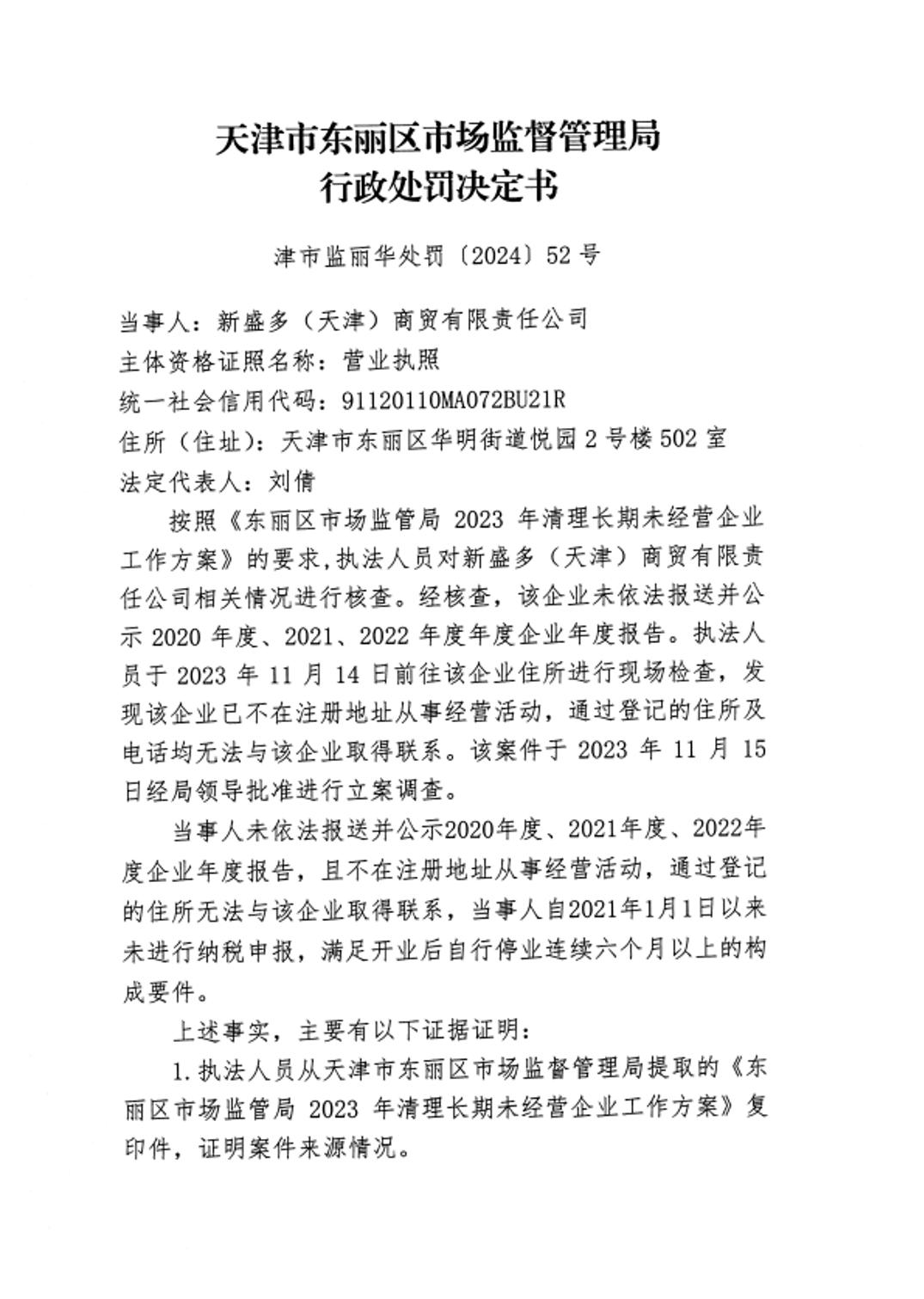 行政处罚决定书--新盛多(天津)商贸有限责任公司