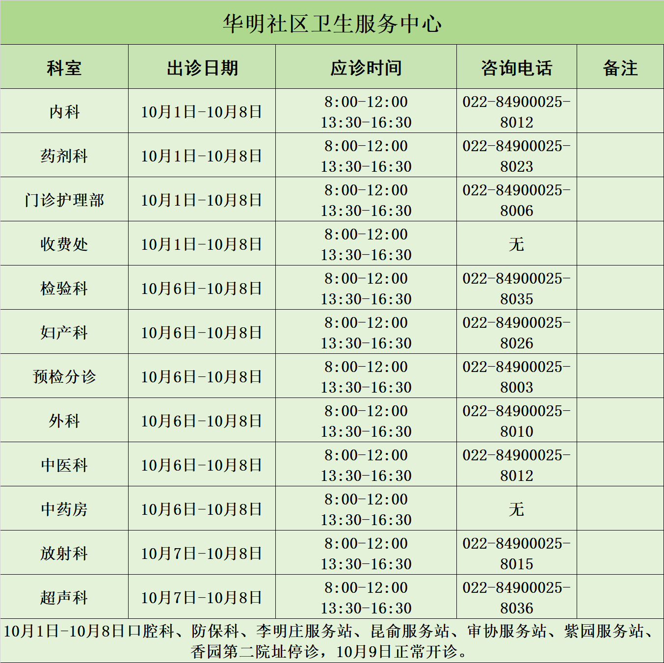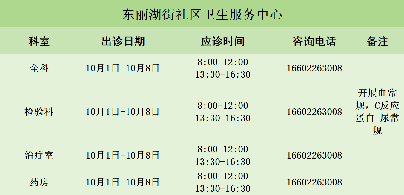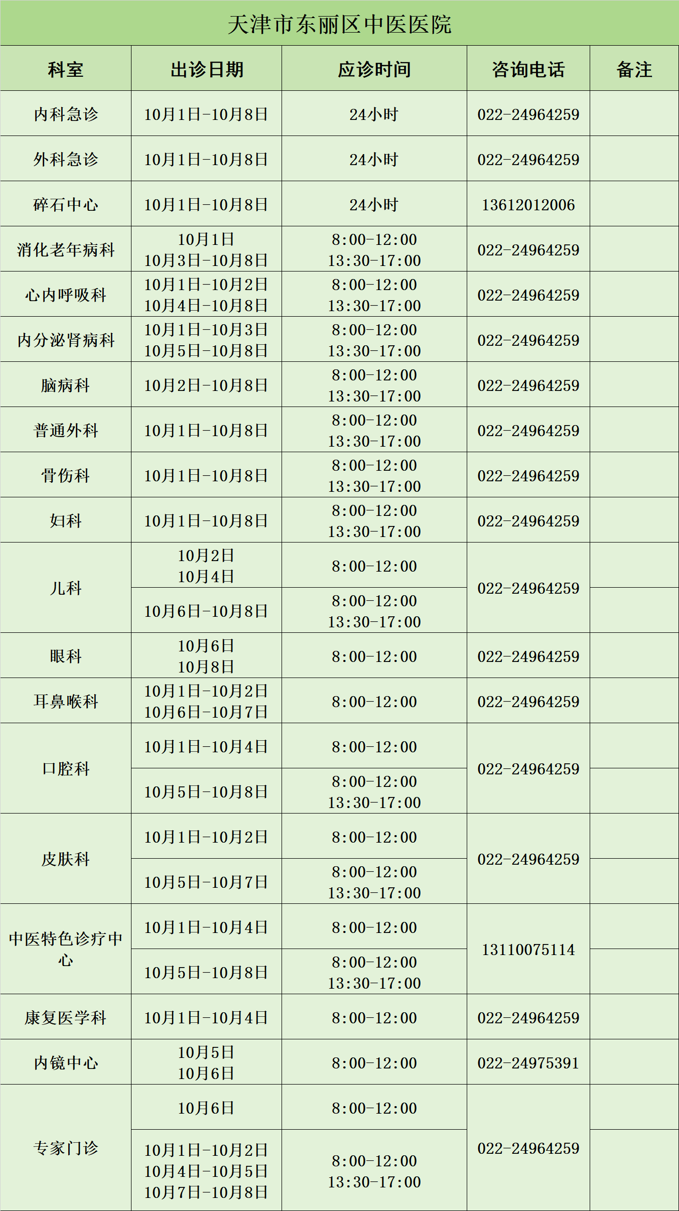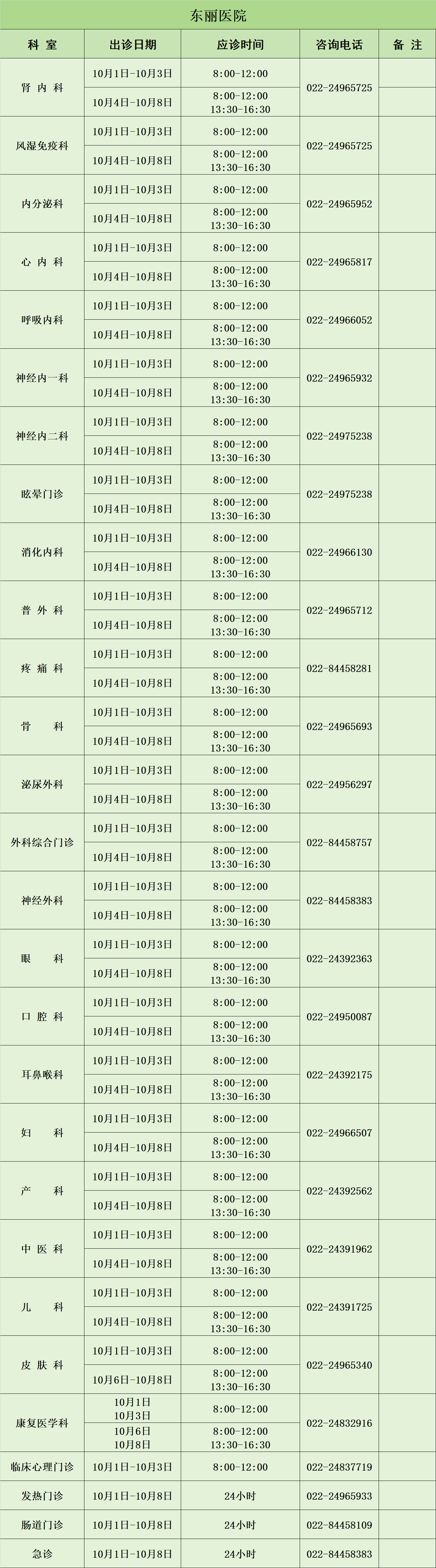 国庆节假期即将来临,为满足广大居民朋友在国庆节假期的就诊需求,现将东丽区公立医疗机构出诊情况整理如下,供大家参考~