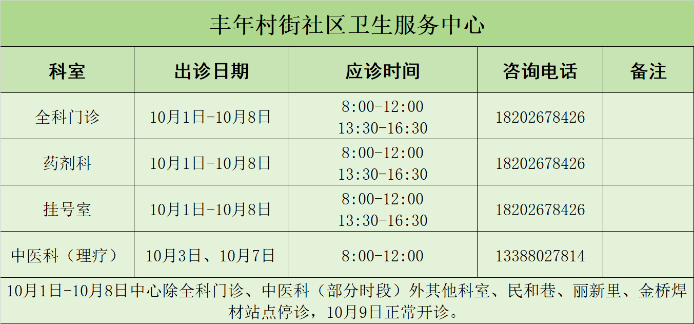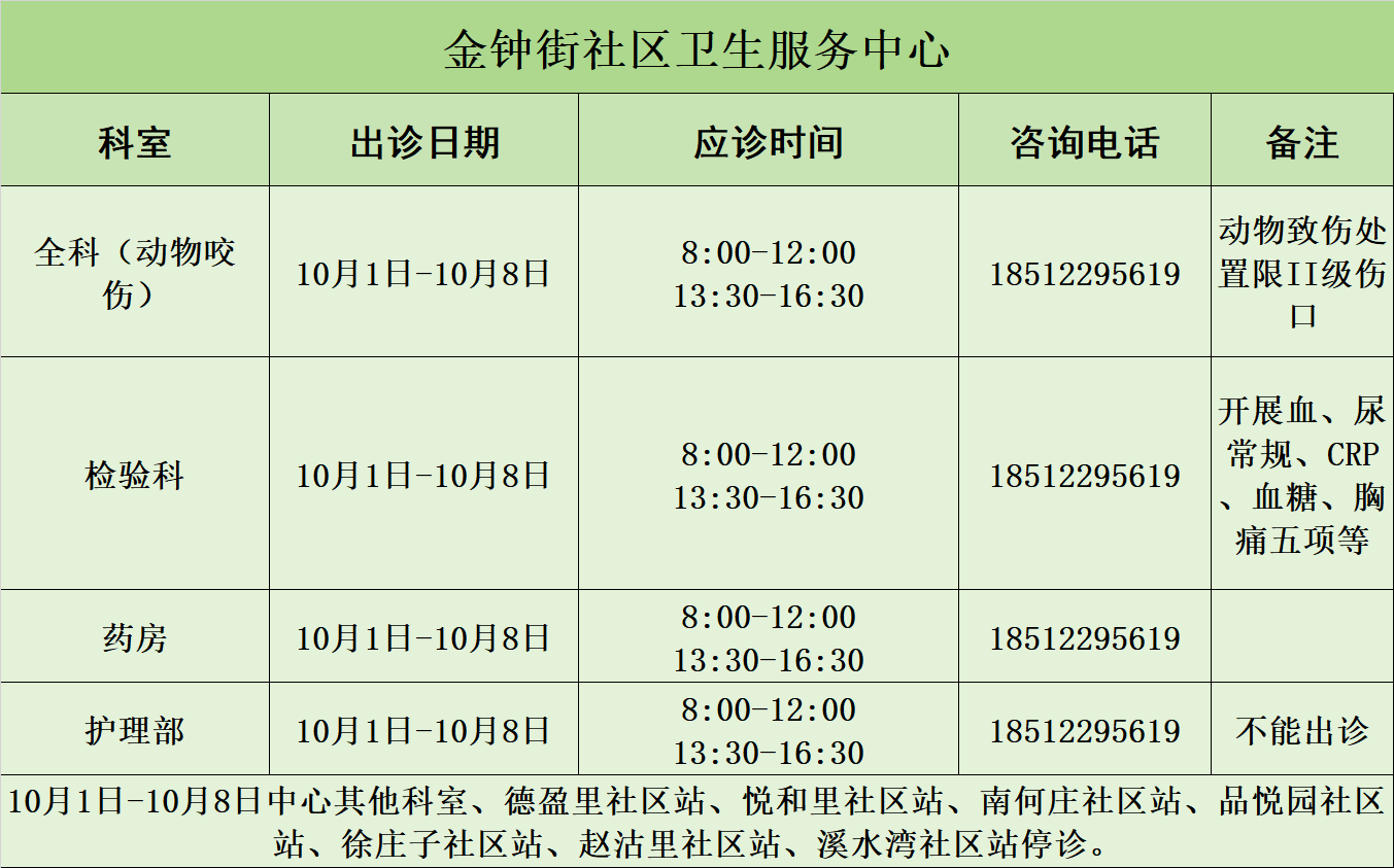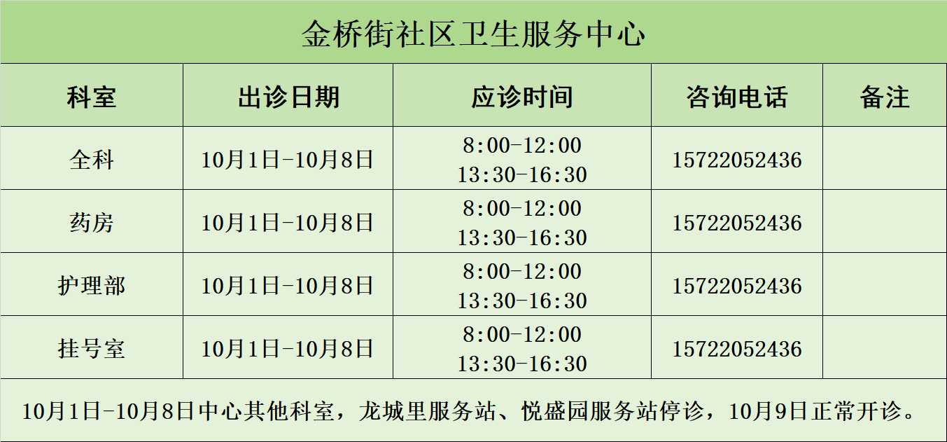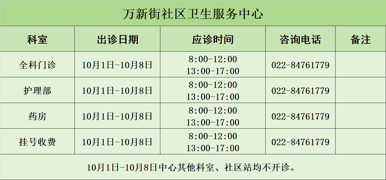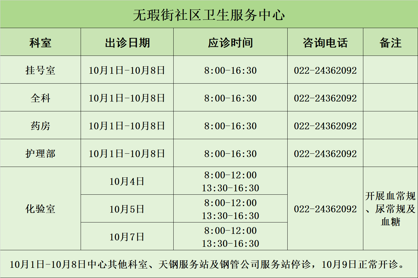 国庆节假期即将来临,为满足广大居民朋友在国庆节假期的就诊需求,现将东丽区公立医疗机构出诊情况整理如下,供大家参考~