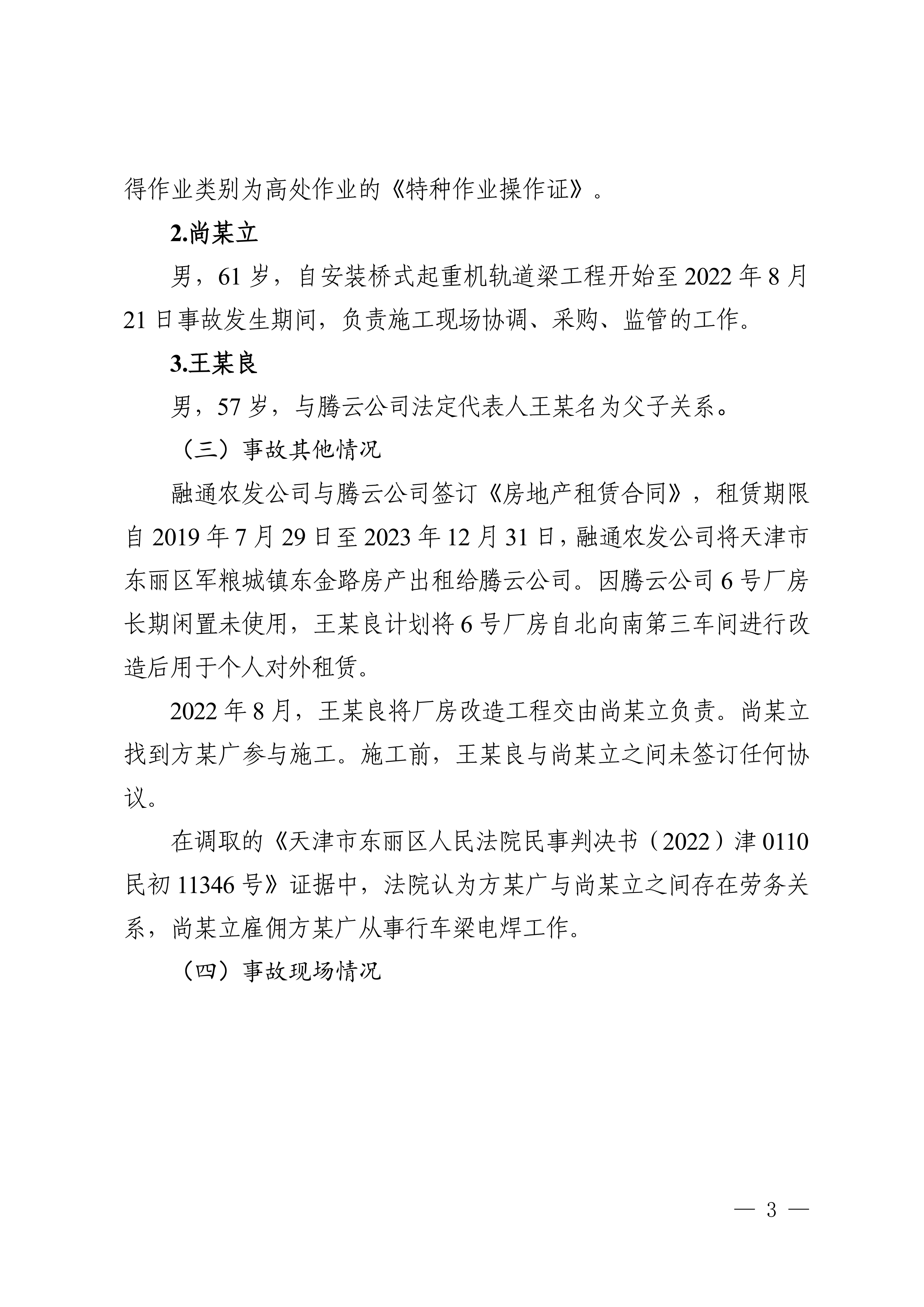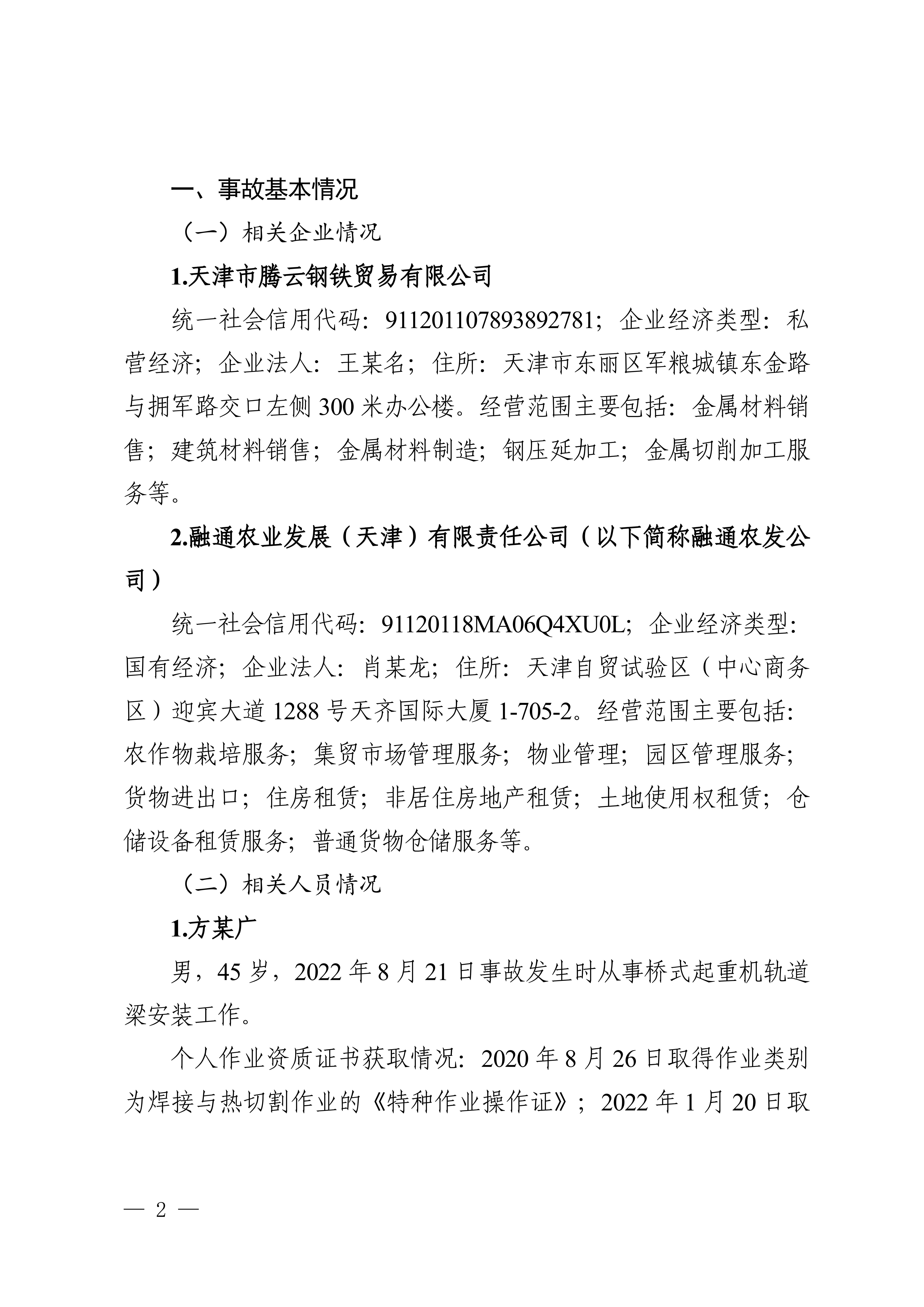 东丽军粮城天津市腾云钢铁贸易有限公司“8.21"一般高处坠落事故调查报告