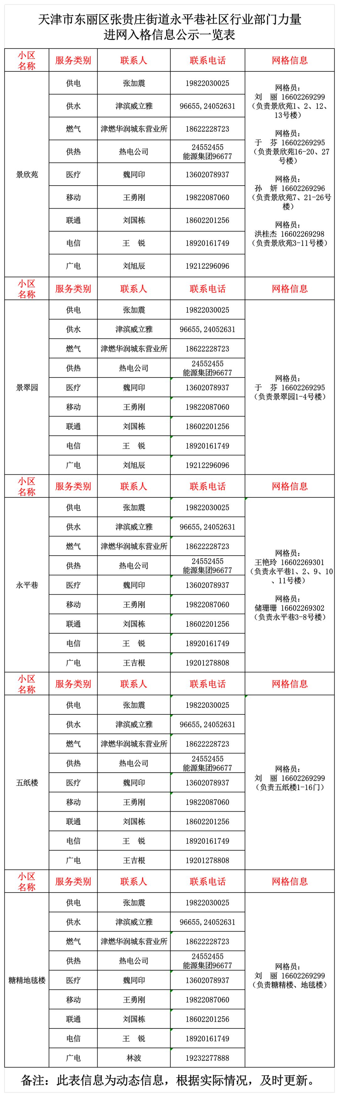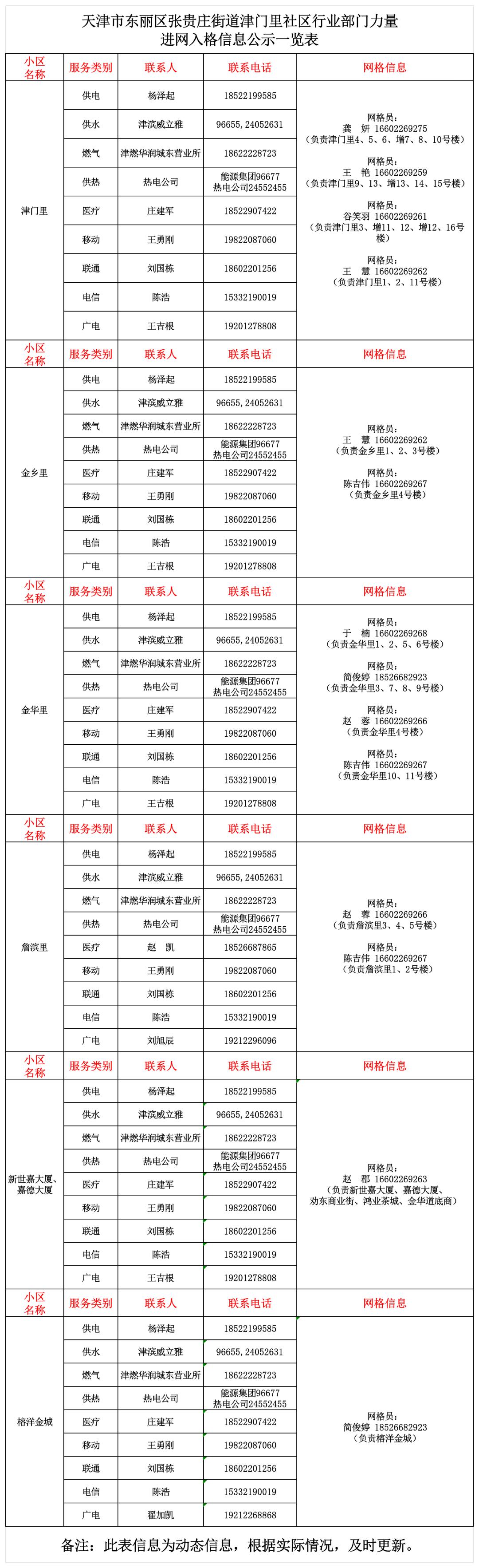 为进一步加强基层治理体系和治理能力现代化建设,推动治理工作更加精细化、精准化,张贵庄街道积极推动开展行业部门力量进网入格工作,增强工作合力,提升治理效能。现将《张贵庄街道各社区行业部门力量进网入格情况一览表》面向居民公示,便于居民直观了解、快速对接、精准联系。(详情见附件)