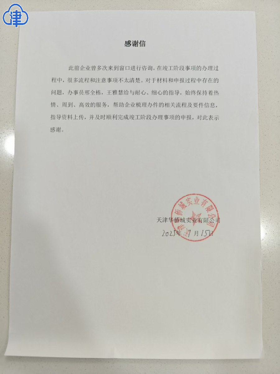 津云新闻讯:近日,天津华侨城实业有限公司向东丽区政务服务中心工程建设项目联审窗口工作人员送上感谢信,信件以质朴真挚的语言,高度认可并诚挚感谢了工作人员的高效服务。